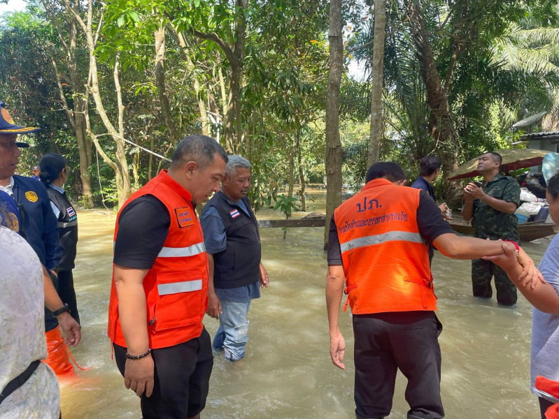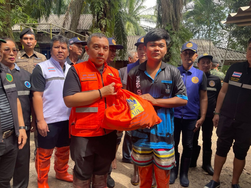 ภายหลังการประชุม ผู้ว่าราชการจังหวัดได้ลงพื้นที่หมู่ที่ 1 ตำบลเคียนซา อำเภอเคียนซา เพื่อมอบถุงยังชีพและให้กำลังใจประชาชนที่ได้รับผลกระทบจากสถานการณ์น้ำล้นตลิ่ง พื้นที่ดังกล่าวมีบ้านเรือนกว่า 100 หลังคาเรือนที่ได้รับผลกระทบ บางจุดระดับน้ำยังคงสูง แต่ประชาชนยังมีขวัญกำลังใจดี และขอบคุณหน่วยงานภาครัฐที่ให้การสนับสนุนอย่างต่อเนื่อง ทั้งด้านการแจกถุงยังชีพ การช่วยระบายน้ำ การเคลื่อนย้ายสิ่งของ และการดูแลในโซนเสี่ยงริมแม่น้ำตาปี