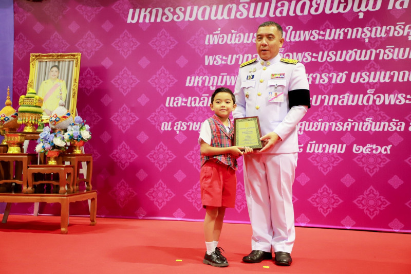 ในการนี้ ผู้ว่าราชการจังหวัดสุราษฎร์ธานีได้เป็นประธานในพิธีบนเวที รับฟังรายงานการจัดงาน พร้อมชมการแสดงจากนักเรียน ก่อนมอบรางวัลให้แก่นักเรียนที่ได้รับรางวัล “เพชรแห่งแผ่นดิน” ครั้งที่ 5 จำนวน 14 รางวัล ซึ่งเป็นเยาวชนที่มีความประพฤติดี มีผลงานโดดเด่น และสร้างคุณประโยชน์ให้กับสังคม รวมทั้งมอบรางวัล “เพชรบุตรโกสินทร์” จำนวน 40 ราย เพื่อเชิดชูเกียรติและเป็นกำลังใจแก่เยาวชนที่ทำความดี