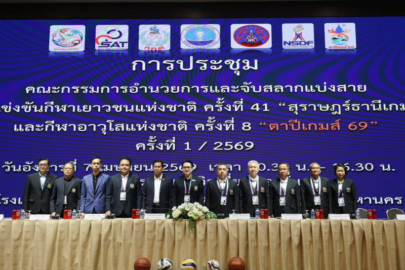 ดร.ก้องศักด ยอดมณี ผู้ว่าการการกีฬาแห่งประเทศไทย (กกท.) เป็นประธานในการประชุมคณะกรรมการอำนวยการและจับสลากแบ่งสาย การจัดการแข่งขันกีฬาเยาวชนแห่งชาติ ครั้งที่ 41 “สุราษฎร์ธานีเกมส์” และกีฬาอาวุโสแห่งชาติ ครั้งที่ 8 “ตาปีเกมส์ 69” ครั้งที่ 1/2569