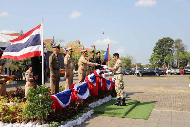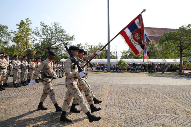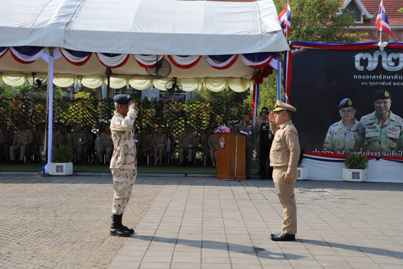 นายจุมพฏ วรรณฉัตรสิริ ผู้ว่าราชการจังหวัดสุราษฎร์ธานี ในฐานะผู้บังคับการกองอาสารักษาดินแดนจังหวัดสุราษฎร์ธานี พร้อมด้วย นายกล้าณรงค์ ยุติธรรม รองผู้ว่าราชการจังหวัดสุราษฎร์ธานี นายจักรกฤษณ์ ฝั่งชลจิตร์ รองผู้ว่าราชการจังหวัดสุราษฎร์ธานี ตัวแทนศาล ทหารตำรวจ หัวหน้าส่วนราชการ เหล่ากาชาด พนักงาน เจ้าหน้าที่ ครอบครัว อส. และผู้เกี่ยวข้อง ร่วมพิธีชุมนุมผู้บังคับบัญชา เจ้าหน้าที่ และสมาชิกกองอาสารักษาดินแดน เนื่องในวันคล้ายวันสถาปนากองอาสารักษาดินแดน ครบรอบ 72 ปี ประจำปี 2569 ที่จัดขึ้น ณ ลานหน้าศาลากลางจังหวัดสุราษฎร์ธานี อำเภอเมืองฯ จังหวัดสุราษฎร์ธานี