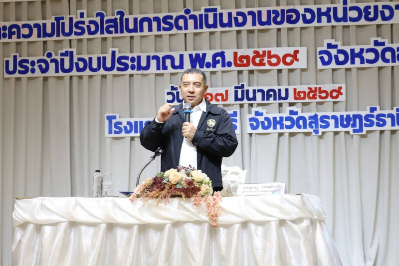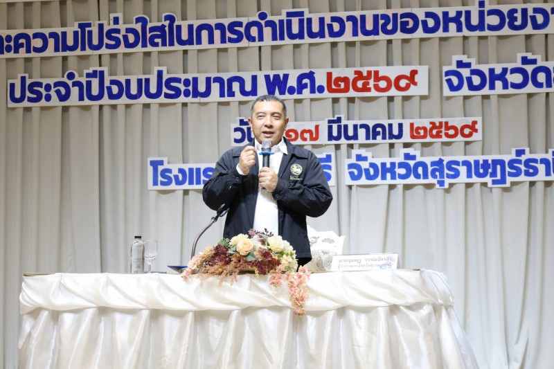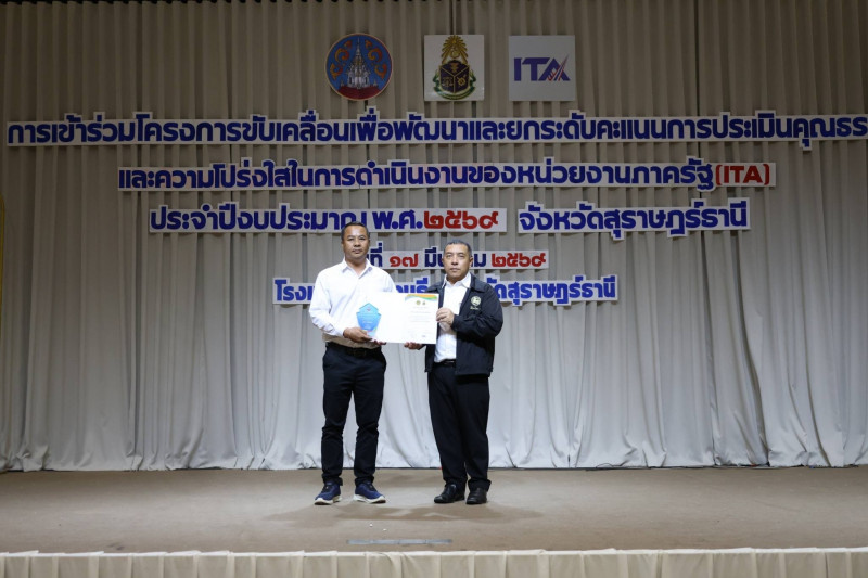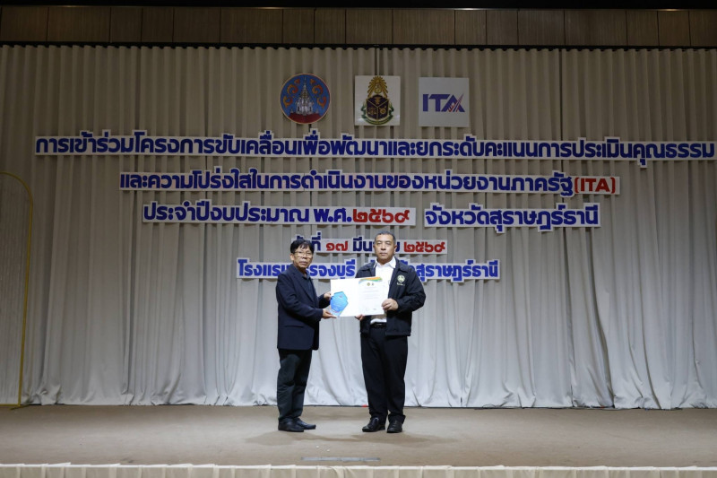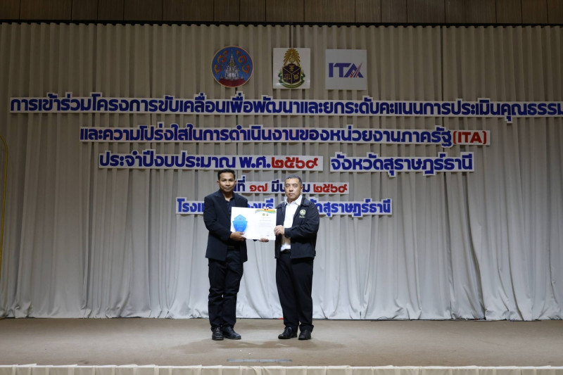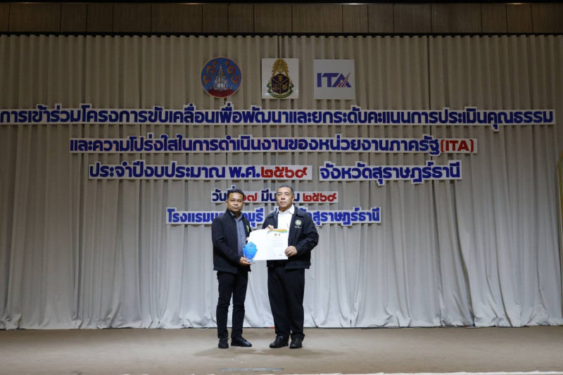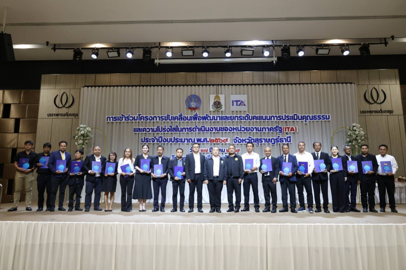 นายจุมพฏ วรรณฉัตรสิริ ผู้ว่าราชการจังหวัดสุราษฎร์ธานี เป็นประธานเปิดการฝึกอบรมโครงการยกระดับคะแนนการประเมินคุณธรรมและความโปร่งใสในการดำเนินงานของหน่วยงานภาครัฐ (ITA) ประจำปีงบประมาณ พ.ศ. 2569 ณ ห้องแกรนด์บอลรูม 2 โรงแรมบรรจงบุรี อำเภอเมืองสุราษฎร์ธานี โดยมีหัวหน้าส่วนราชการระดับจังหวัด อำเภอ และองค์กรปกครองส่วนท้องถิ่นเข้าร่วมอบรม จำนวน 200 คน เข้าร่วมอบรม และได้รับความอนุเคราะห์วิทยากรจาก สำนักงาน ป.ป.ช. ประจำจังหวัดสุราษฎร์ธานี และสำนักงานป้องกันและปราบปรามการทุจริตในภาครัฐ เขต 8 ถ่ายทอดองค์ความรู้ด้านการยกระดับ ITA การส่งเสริมคุณธรรม จริยธรรม หลักธรรมาภิบาล นโยบาย No Gift Policy และการประเมินความเสี่ยงเพื่อป้องกันการทุจริต
