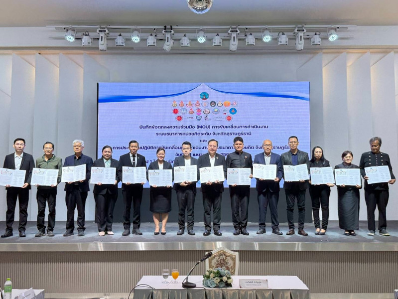 นายวิทศักดิ์ จำเริญนุสิต รองผู้ว่าราชการจังหวัดฯ เป็นประธาน ในพิธีเปิดการประชุมเชิงปฏิบัติการ และร่วมเป็นสักขีพยานในการลงนามบันทึกข้อตกลง MOU การขับเคลื่อนการดำเนินงานระบบธนาคารหน่วยกิต จังหวัดสุราษฎร์ธานี