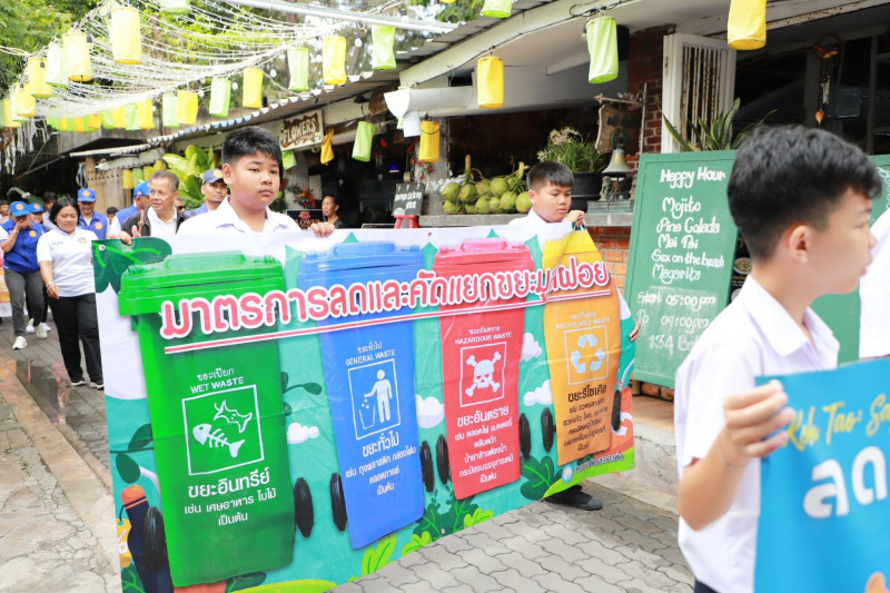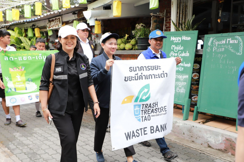 จากนั้นได้เยี่ยมชมบูธนิทรรศการและจุดสาธิตการจัดการขยะครบวงจร พร้อมปล่อยขบวนและร่วมเดินรณรงค์ “ลด–แยก–เก็บ–เพื่อ–เต่า” ครอบคลุมพื้นที่ 3 หมู่บ้าน พร้อมทั้งเดินทางไปยัง ศูนย์เรียนรู้รักแบนเกาะเต่า เพื่อติดตามระบบการจัดการขยะและน้ำเสียแบบเหลือศูนย์ (Zero Waste)