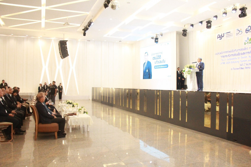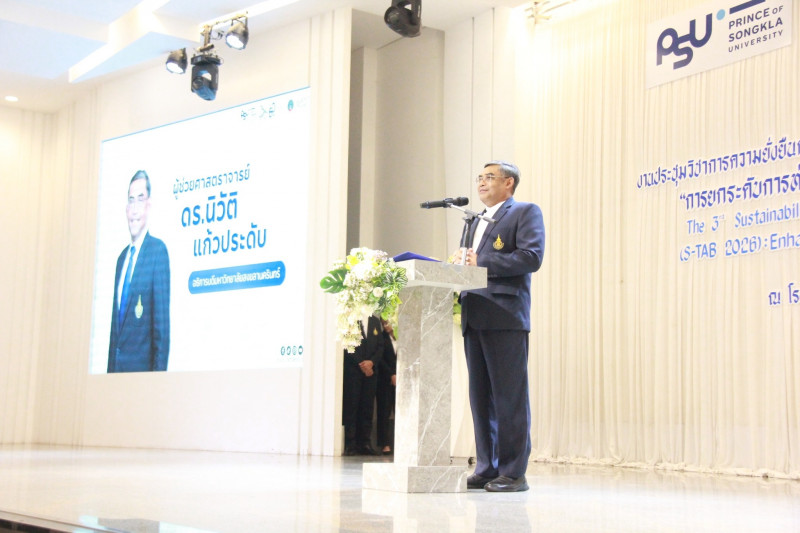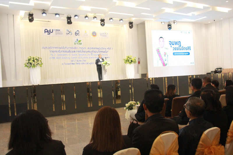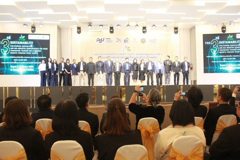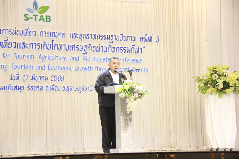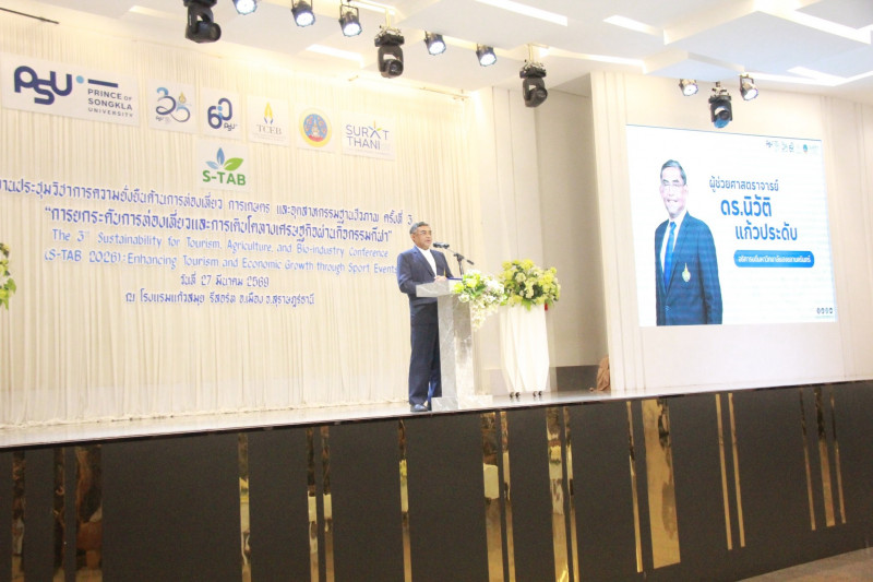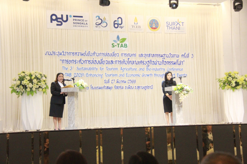 นางสาววราภรณ์ รุ่งตระการ รองปลัดกระทรวงการอุดมศึกษา วิทยาศาสตร์ วิจัยและนวัตกรรม (อว.) เป็นประธานเปิดการประชุมวิชาการความยั่งยืนด้านการท่องเที่ยว การเกษตร และอุตสาหกรรมฐานชีวภาพ ครั้งที่ 3 ประจำปี พ.ศ. 2569 ภายใต้หัวข้อ “ยกระดับการท่องเที่ยวและการเติบโตทางเศรษฐกิจผ่านกิจกรรมกีฬา” ที่จัดขึ้นโดยมหาวิทยาลัยสงขลานครินทร์ วิทยาเขตสุราษฎร์ธานี ร่วมกับ TCEB ภาคใต้ ณ โรงแรมแก้วสมุย รีสอร์ท อำเภอเมืองฯ จังหวัดสุราษฎร์ธานี