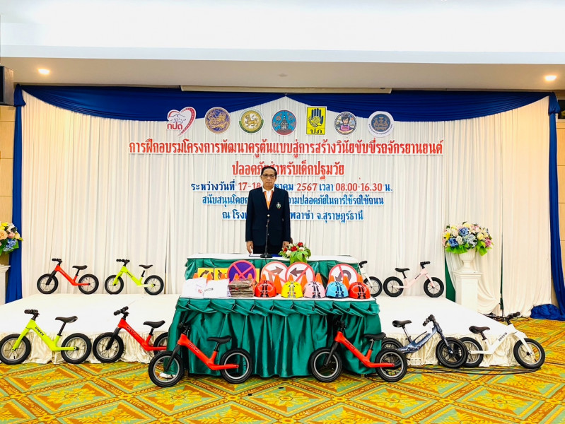 รองผู้ว่าราชการจังหวัดสุราษฎร์ธานี เป็นประธานในพิธีเปิดโครงการพัฒนาครูต้นแบบสู่การสร้างวินัยขับขี่รถจักรยานยนต์ปลอดภัยสำหรับเด็กปฐมวัย