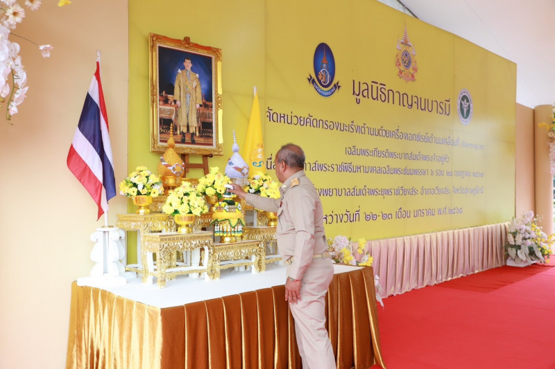 นายสุคนธ์ หนูภักดี รองผู้ว่าราชการจังหวัดสุราษฎร์ธานี เป็นประธานในพิธีเปิดโครงการคัดกรองมะเร็งเต้านมโดยเครื่องเอกซเรย์เต้านมเคลื่อนที่ (Mammogram) ในสตรีกลุ่มเสี่ยงและด้อยโอกาส 4 หน่วย 4 ภาค ทั่วประเทศ เฉลิมพระเกียรติพระบาทสมเด็จพระเจ้าอยู่หัว เนื่องในโอกาสพระราชพิธีมหามงคล เฉลิมพระชนมพรรษา 6 รอบ 28 กรกฎาคม 2567 พร้อมด้วยผู้แทนมูลนิธิกาญจนบารมี นายแพทย์สาธารณสุขจังหวัดสุราษฎร์ธานี ผู้อำนวยการโรงพยาบาลสมเด็จพระยุพราชเวียงสระหัวหน้าส่วนราชการ ประชาชน เข้าร่วมในพิธี