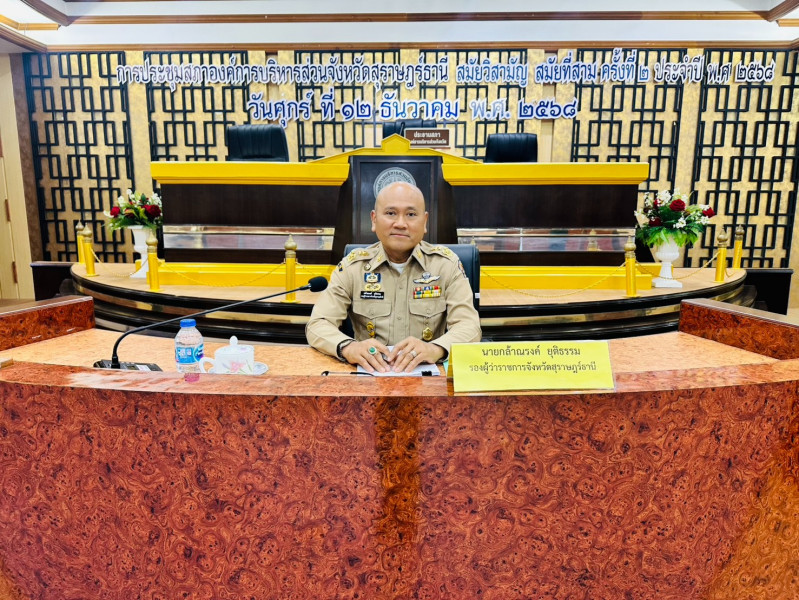 วันที่ 15 ธันวาคม 2568 เวลา 13.00 น. ณ ห้องประชุมสภาองค์การบริหารส่วนจังหวัดสุราษฎร์ธานี ชั้น 3 อาคารองค์การบริหารส่วนจังหวัดสุราษฎร์ธานี