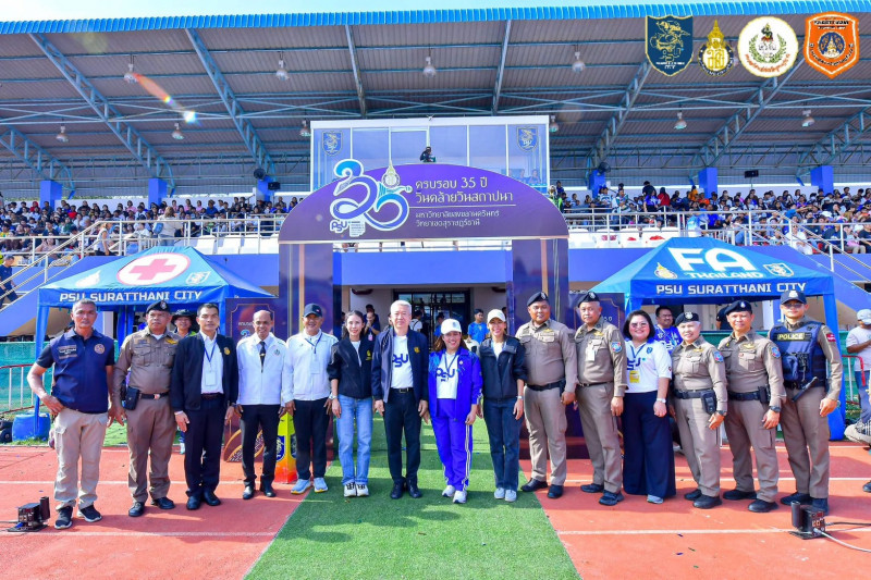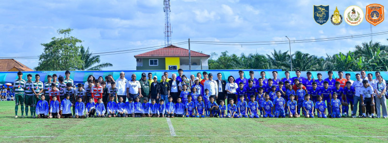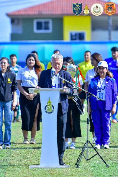 รองผู้ว่าราชการจังหวัดสุราษฎร์ธานี กล่าวต้อนรับทีมฟุตบอลหมอนทองวิทยา และประชาชนผู้เข้าร่วมรับชมการแข่งขัน ในการแข่งขันฟุตบอลกระชับมิตรส่งท้ายปีทีมหมอนทองวิทยากับทีมเยาวชนจังหวัดสุราษฎร์ธานี