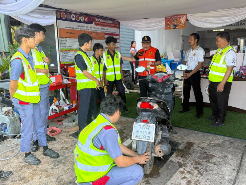3.2 จุดอาชีวะ-ขนส่ง อาสาช่วยประชาชน ในปั๊มน้ำมัน PT สาขาสี่แยกไชยา