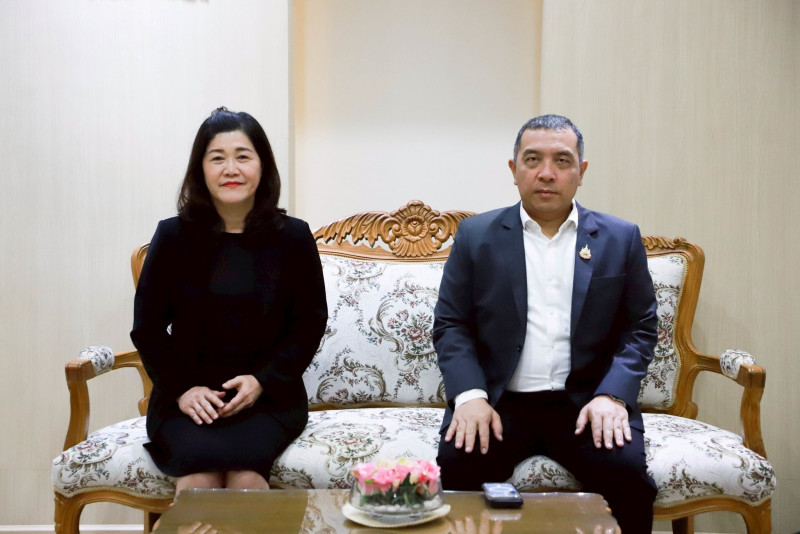 นายจุมพฏ วรรณฉัตรสิริ ผู้ว่าราชการจังหวัดสุราษฎร์ธานี ให้การต้อนรับนางสาววราพรรณ ชัยชนะศิริ ผู้ตรวจราชการกระทรวงวัฒนธรรม เขตตรวจราชการที่ 5 พร้อมคณะ ในโอกาสเข้าพบหารือข้อราชการ