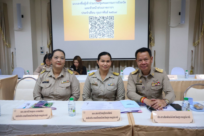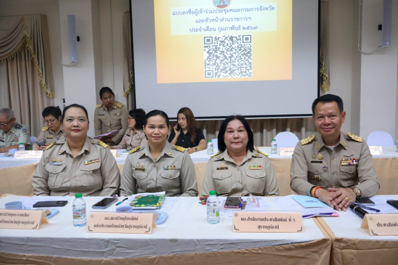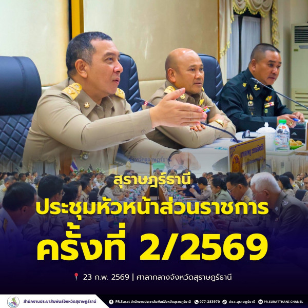 วันที่ 23 กุมภาพันธ์ 2569 เวลา 9.30 น. ณ ห้องประชุมเมืองคนดี ชั้น 5 ศาลากลางจังหวัดสุราษฎร์ธานี