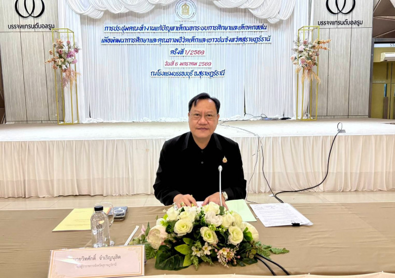 นายวิทศักดิ์ จำเริญนุสิต รองผู้ว่าราชการจังหวัดฯ เป็นประธานการประชุมคณะทำงานแก้ปัญหาเด็กนอกระบบการศึกษาและเด็กตกหล่น เพื่อพัฒนาการศึกษาและคุณภาพชีวิตเด็กและเยาวชนจังหวัดสุราษฎร์ธานี ครั้งที่ 1/2569