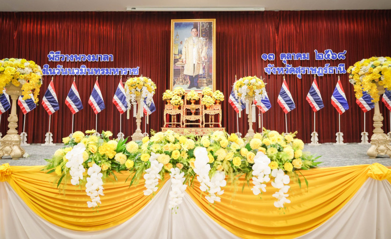 นายธีรุตม์ ศุภวิบูลย์ผล ผู้ว่าราชการจังหวัดสุราษฎร์ธานี เป็นประธานในพิธีวางพวงมาลา น้อมรำลึกถึงพระมหากรุณาธิคุณพระบาทสมเด็จพระบรมชนกาธิเบศร มหาภูมิพลอดุลยเดชมหาราช บรมนาถบพิตร เนื่องในวันนวมินทรมหาราช 13 ตุลาคม 2568 โดยมีนายวิทศักดิ์ จำเริญนุสิต รองผู้ว่าราชการจังหวัดสุราษฎร์ธานี หัวหน้าส่วนราชการ ทหาร ตำรวจ องค์กรปกครองส่วนท้องถิ่น และพสกนิกรทุกหมู่เหล่า เข้าร่วมพิธี