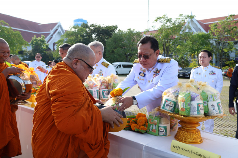 นายธีรุตม์ ศุภวิบูลย์ผล ผู้ว่าราชการจังหวัดสุราษฎร์ธานี เป็นประธานในพิธีทำบุญตักบาตรถวายเป็นพระราชกุศลเนื่องในวันนวมินทรมหาราช 13 ตุลาคม 2568 โดยมีพระพรหมวชิรเมธาจารย์ เจ้าคณะภาค 16 เจ้าอาวาสวัดไตรธรรมาราม เป็นประธานฝ่ายสงฆ์ ตลอดจนพระสงฆ์ทรงสมณศักดิ์ รวม 10 รูป รองผู้ว่าราชการจังหวัดสุราษฎร์ธานี หัวหน้าส่วนราชการ ทหาร ตำรวจ องค์กรปกครองส่วนท้องถิ่นและพสกนิกรทุกหมู่เหล่า เข้าร่วมพิธีสวดพระพุทธมนต์ จากนั้นผู้ว่าราชการจังหวัดสุราษฎร์ธานี ได้นำผู้เข้าร่วมพิธีร่วมทำบุญตักบาตรแด่พระภิกษุสงฆ์ จำนวน 92 รูป