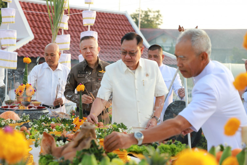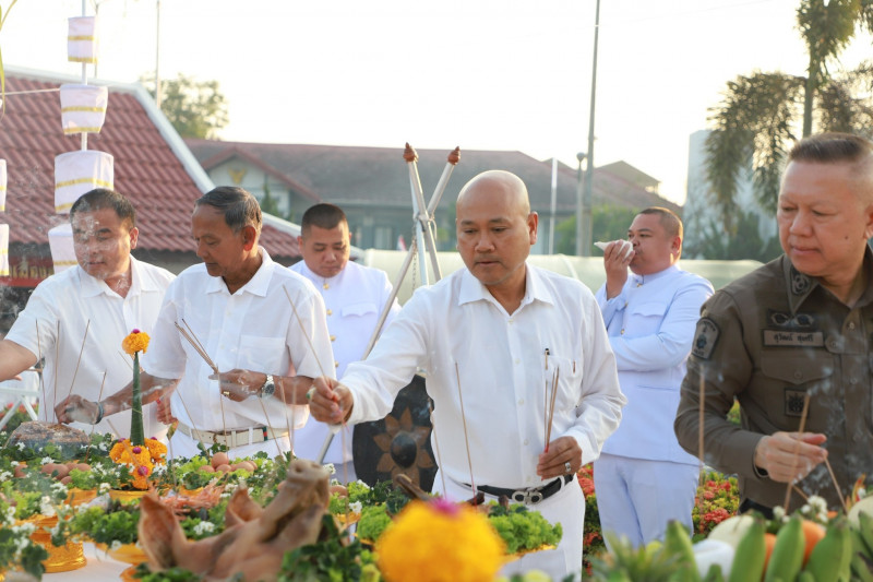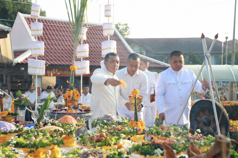 นายจุมพฏ วรรณฉัตรสิริ ผู้ว่าราชการสุราษฎร์ธานี เป็นประธานในพิธีบวงสรวงศาลหลักเมือง เนื่องในงาน “แห่ผ้าห่มพระธาตุศรีสุราษฎร์ แลธรรมชาติเขาท่าเพชร” ครั้งที่ 16 ประจำปี 2569 พร้อมด้วย นายวิทศักดิ์ จำเริญนุสิต นายกล้าณรงค์ ยุติธรรม นายจักรกฤษณ์ ฝั่งชลจิตร์ รองผู้ว่าราชการจังหวัดสุราษฎร์ธานี หัวหน้าส่วนราชการ นายอำเภอ ทหาร ตำรวจ องค์กรปกครองส่วนท้องถิ่น หน่วยงานภาครัฐและภาคเอกชน เข้าร่วมพิธี ณ ศาลหลักเมืองสุราษฎร์ธานี