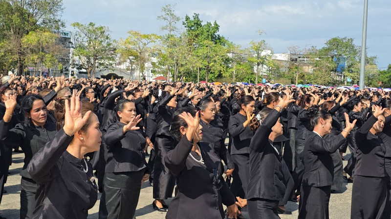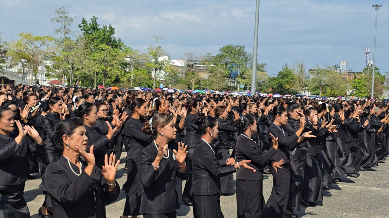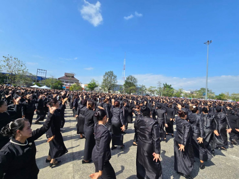 ก่อนพิธีปล่อยขบวน มีการรำถวายความอาลัยและการแปรอักษรอย่างยิ่งใหญ่ เพื่อน้อมรำลึกในพระมหากรุณาธิคุณของ สมเด็จพระนางเจ้าสิริกิติ์ พระบรมราชินีนาถ พระบรมราชชนนีพันปีหลวง จากสตรีผู้ร่วมงานกว่า 3,320 คน พร้อมการจัดรูปแบบแปรอักษร “สุราษฎร์ธานี” สะท้อนพลังความจงรักภักดีและความสามัคคีของสตรีชาวสุราษฎร์ธานี