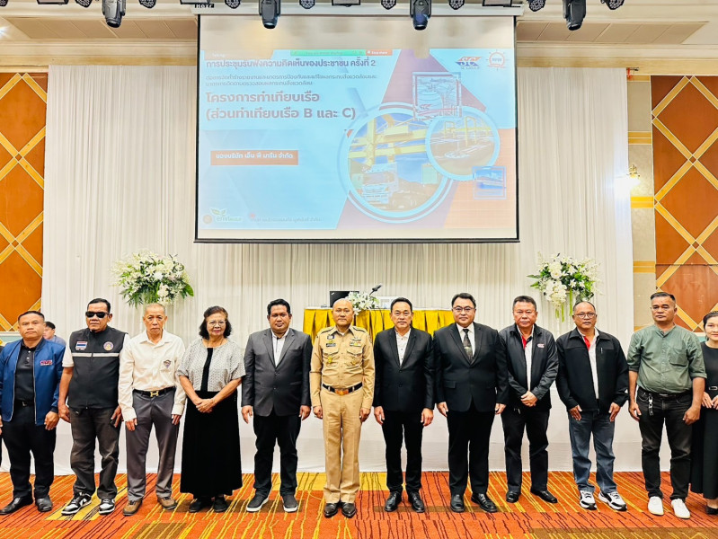 นายกล้าณรงค์ ยุติธรรม รองผู้ว่าราชการจังหวัดสุราษฎร์ธานี เป็นประธานกล่าวเปิดการประชุมรับฟังความเห็นของประชาชน ครั้งที่ 2 ต่อร่างรายงานการประเมินผลกระทบสิ่งแวดล้อมและมาตรการป้องกันและแก้ไขผลกระทบสิ่งแวดล้อมและมาตรการติดตามตรวจสอบผลกระทบสิ่งแวดล้อม โครงการท่าเทียบเรือ (ส่วนท่าเทียบเรือ B และ C) ของบริษัท เอ็น พี มารีน จำกัด โดยโครงการดังกล่าวเป็นการปรับปรุงท่าเทียบเรือ B และ C เพื่อรองรับเรือที่มีขนาดมากกว่า 500 ตันกรอสและรองรับการขนถ่ายสินค้าทั่วไปประเภทเทกองและก๊าซปิโตรเลียม (LPG) โดยการประชุมในวันนี้มีวัตถุประสงค์เพื่อนำเสนอผลการศึกษาและร่างรายงานการประเมินผลกระทบสิ่งแวดล้อมและมาตรการป้องกันและแก้ไขผลกระทบสิ่งแวดล้อม รวมไปถึงเพื่อรับฟังความคิดเห็นของประชาชนในพื้นที่ใกล้เคียงของโครงการด้วย