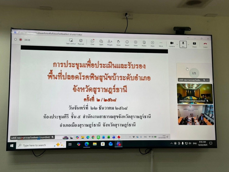 วันที่ 22 ธันวาคม 2568 เวลา 09.00 น. ณ ห้องประชุมคีรี ชั้น 5 สำนักงานสาธารณสุขจังหวัดสุราษฎร์ธานี