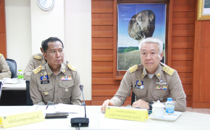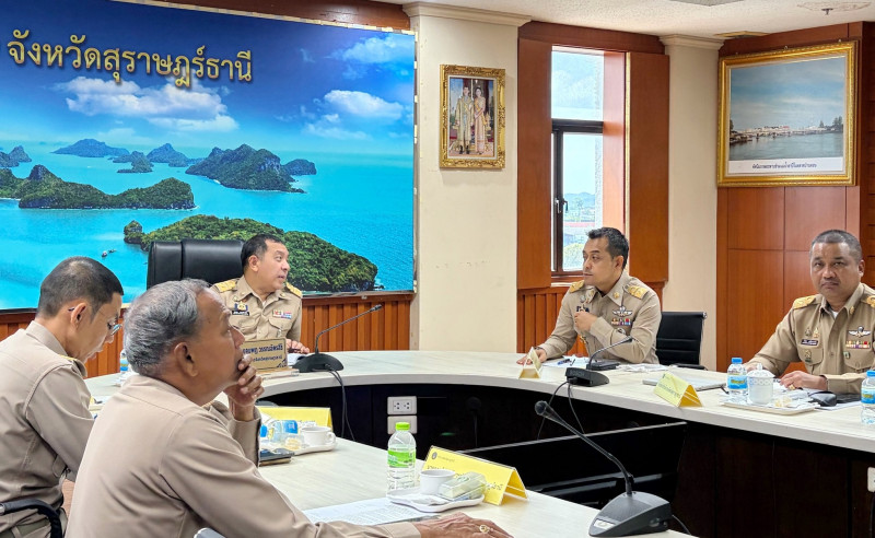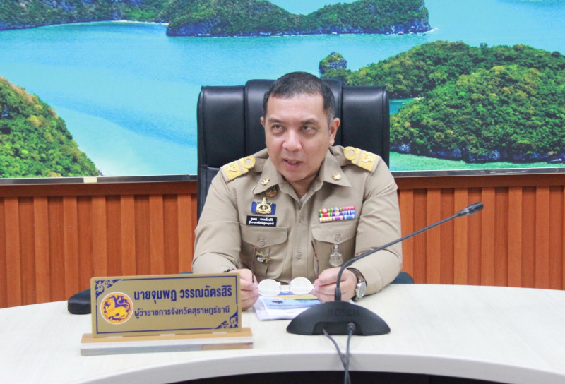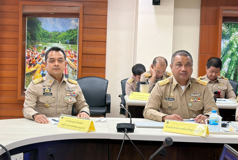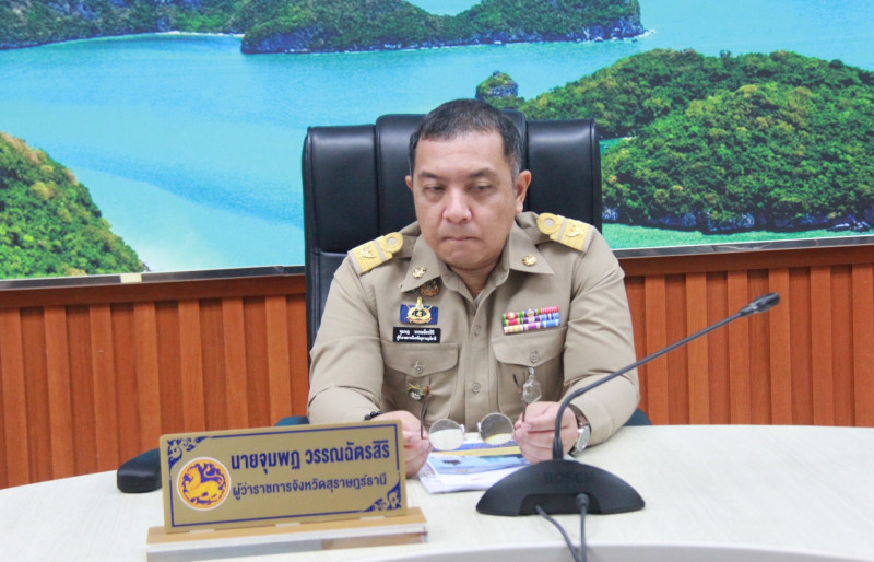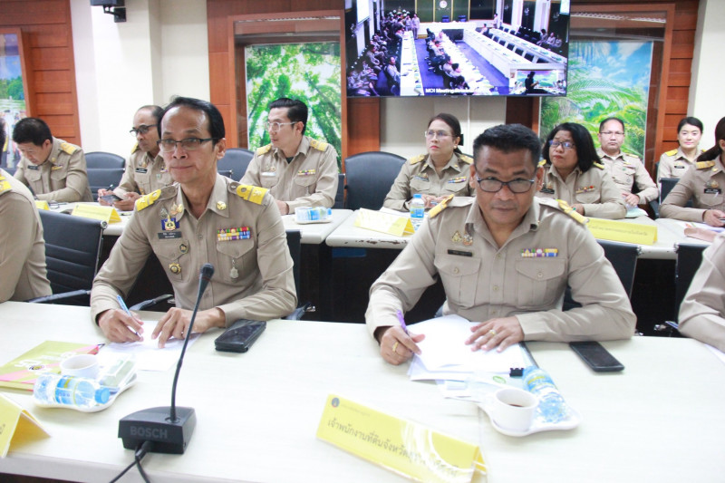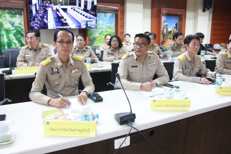 นายจุมพฏ วรรณฉัตรสิริ ผู้ว่าราชการจังหวัดสุราษฎร์ธานี พร้อมด้วยรองผู้ว่าราชการจังหวัด ปลัดจังหวัด นายอำเภอ หัวหน้าส่วนราชการ/หน่วยงานรัฐวิสาหกิจในสังกัดกระทรวงมหาดไทย ตลอดจนผู้เกี่ยวข้อง ร่วมประชุมขับเคลื่อนภารกิจสำคัญของกระทรวงมหาดไทย ณ ห้องประชุมตาปี ขั้น 4 ศาลากลางจังหวัดสุราษฎร์ธานี และผ่านระบบวิดีโอทางไกลร่วมกับส่วนกลาง (Video Conference) ณ ห้องประชุมราชสีห์ อาคารศาลาว่าการกระทรวงมหาดไทย พร้อมกับจังหวัดต่างๆ ทั่วประเทศ เพื่อรับทราบนโยบาย/ข้อสั่งการของนายอนุทิน ชาญวีรกูล นายกรัฐมนตรี และรัฐมนตรีว่าการกรทรวงมหาดไทย พร้อมติดตามผลการดำเนินงานของหน่วยงานที่เกี่ยวข้อง ทั้งในส่วนกลางและส่วนภูมิภาค