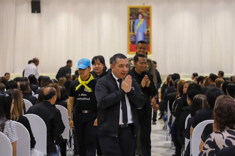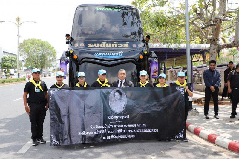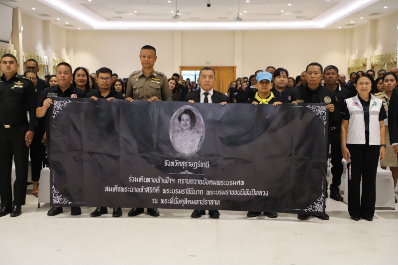 นายจุมพฏ วรรณฉัตรสิริ ผู้ว่าราชการจังหวัดสุราษฎร์ธานี กล่าวให้โอวาทแก่เจ้าหน้าที่และประชาชนชาวจังหวัดสุราษฎร์ธานี ก่อนออกเดินทางไปเข้าเฝ้าฯ กราบถวายบังคมพระบรมศพ สมเด็จพระนางเจ้าสิริกิติ์ พระบรมราชินีนาถ พระบรมราชชนนีพันปีหลวง พร้อมปล่อยขบวนเดินทางจากบริเวณหน้าศาลากลางจังหวัดสุราษฎร์ธานี มุ่งหน้าสู่กรุงเทพมหานคร เพื่อถวายความอาลัยและแสดงความจงรักภักดีแด่พระองค์ท่าน ผู้ทรงเป็นแม่แห่งแผ่นดิน ผู้เปี่ยมด้วยพระเมตตา และทรงอุทิศพระวรกายเพื่อความสุขของพสกนิกรชาวไทย โดยมีนายจักรกฤษณ์ ฝั่งชลจิตร์ รองผู้ว่าราชการจังหวัดสุราษฎร์ธานี พร้อมด้วยหัวหน้าส่วนราชการ ข้าราชการ และเจ้าหน้าที่ที่เกี่ยวข้องเข้าร่วม