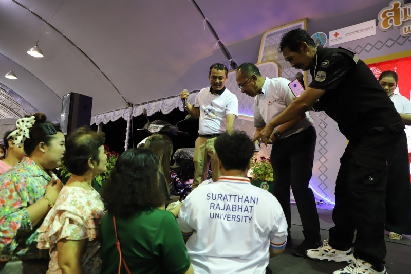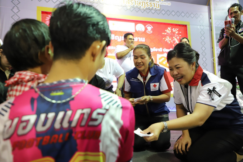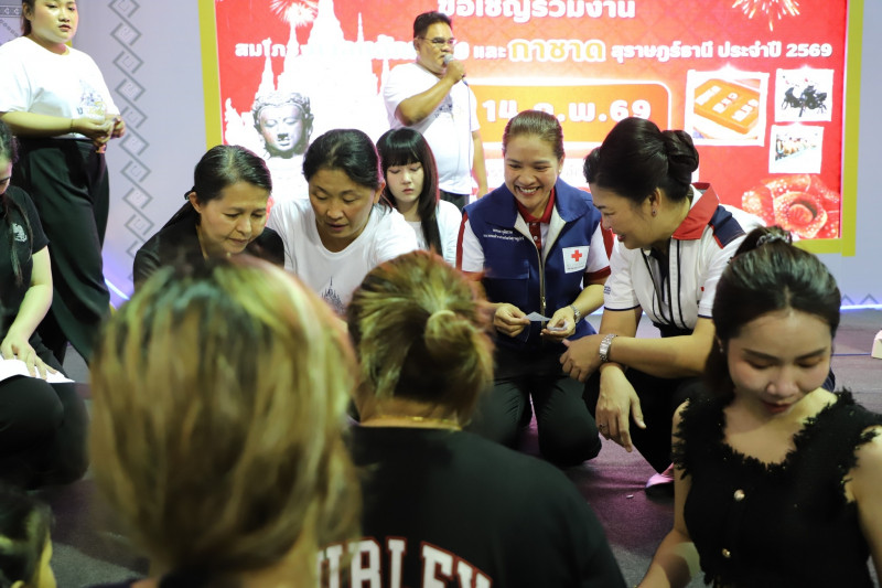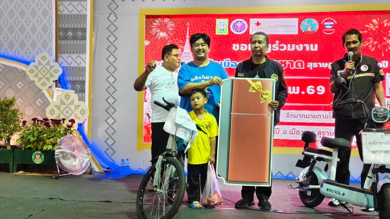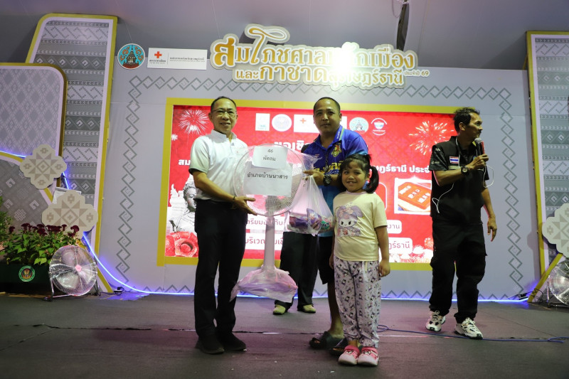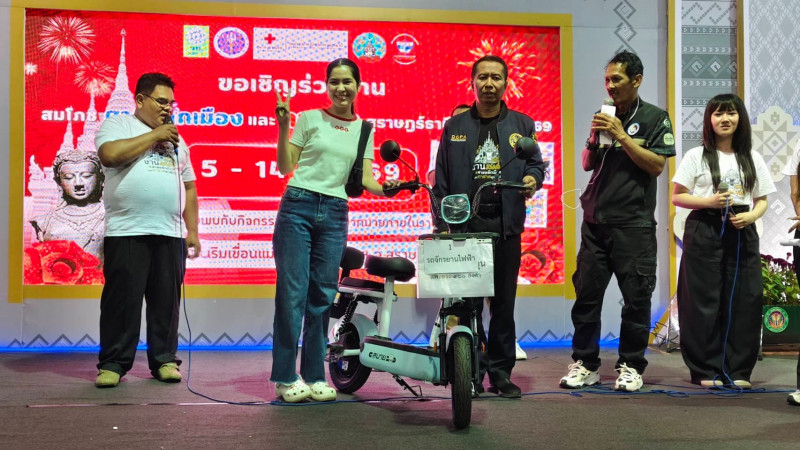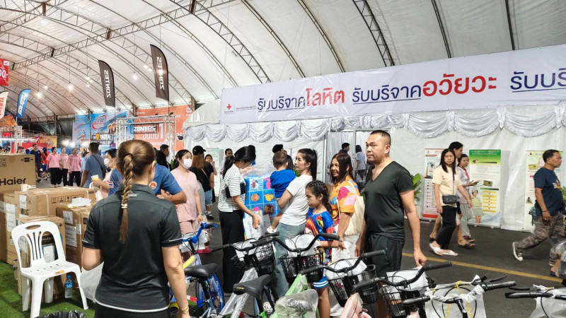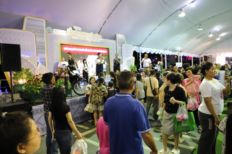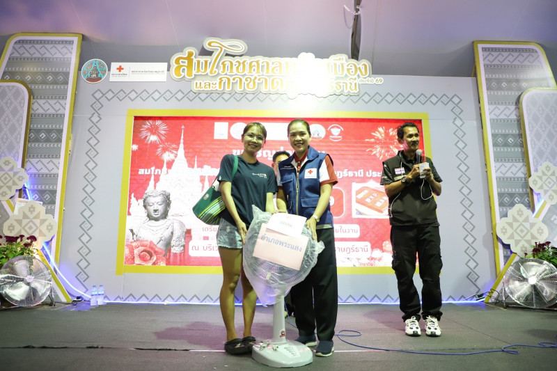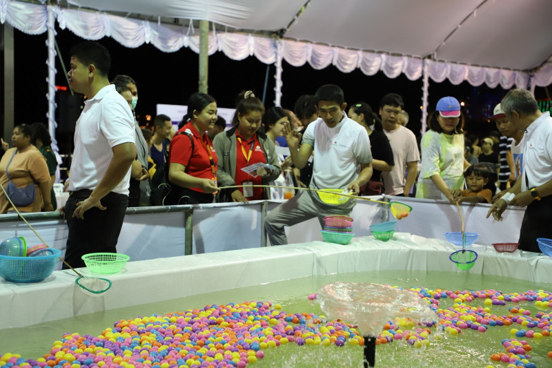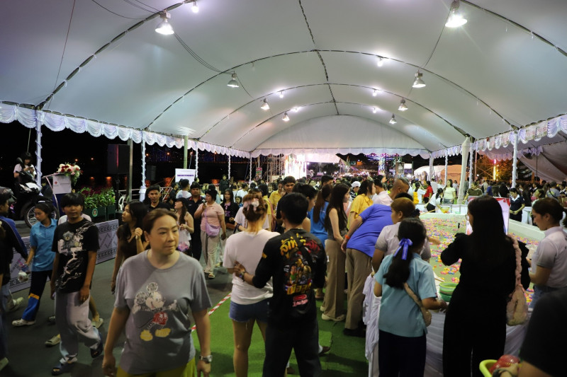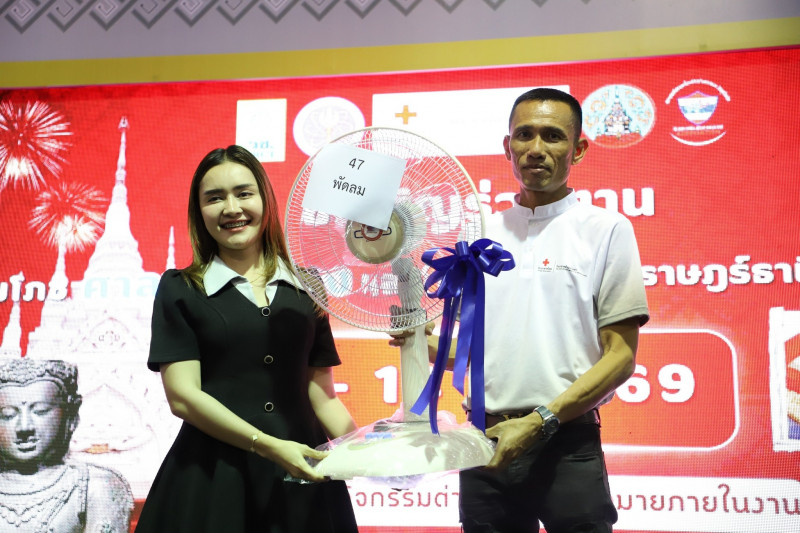 บรรยากาศภายในงานเป็นไปอย่างคึกครื้น โดยเฉพาะร้านนาวากาชาดที่ได้รับความสนใจอย่างล้นหลาม ประชาชนต่างร่วมลุ้นโชคกันอย่างตื่นเต้น ก่อนเสียงเฮดังสนั่น เมื่อรางวัลใหญ่ “รถจักรยานยนต์” ออกแก่ผู้โชคดี สร้างรอยยิ้มและความดีใจให้กับผู้ร่วมงานตลอดค่ำคืน นอกจากนี้ ภายในงานยังเต็มไปด้วยสีสันจากร้านค้า การแสดง และกิจกรรมหลากหลาย พร้อมเชิญชวนประชาชนร่วมเที่ยวงานและลุ้นโชคได้อย่างต่อเนื่องตลอดระยะเวลาการจัดงาน