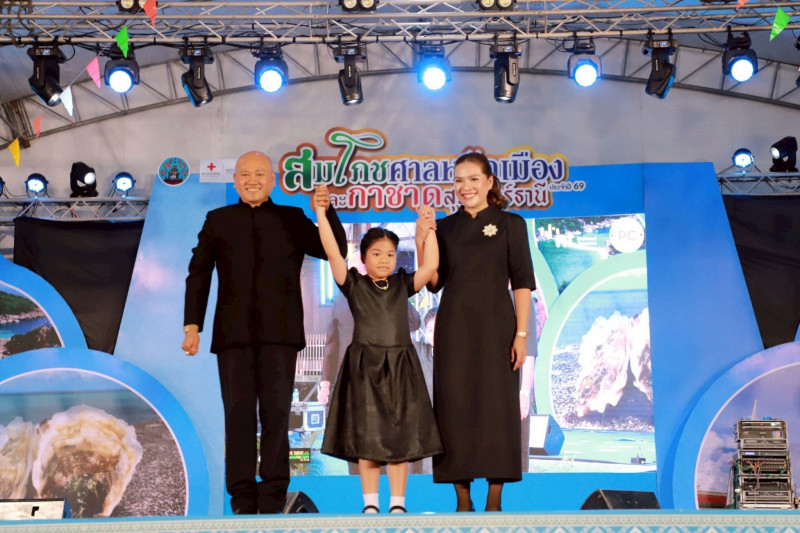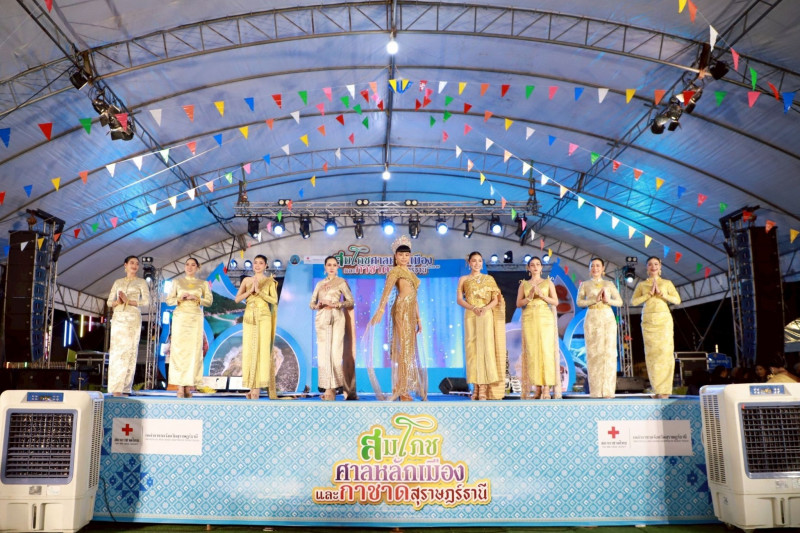 นายจุมพฏ วรรณฉัตรสิริ ผู้ว่าราชการจังหวัดสุราษฎร์ธานี เป็นประธานพิธีเปิดและร่วมเดินแบบผ้าไทยเพื่อการกุศล "วิจิตรพัสตรา ภูษาศิลป์ งามผ้าถิ่นเมืองคนดี" ในงานสมโภชศาลหลักเมืองและกาชาดสุราษฎร์ธานี ประจำปี 2569 เพื่อเป็นการสืบสานอนุรักษ์ศิลป์ผ้าถิ่นไทยดำรงไว้ในแผ่นดินส่งเสริมและสนับสนุนการใช้และสวมใส่ผ้าไทยตามมติคณะรัฐมนตรี รวมถึงขับเคลื่อนโครงการผ้าไทยใส่ให้สนุก ณ เวทีกลางท่าปลาวาฬ ริมเขื่อนแม่น้ำตาปี โดยมีนางวีณา วรรณฉัตรสิริ นายกเหล่ากาชาดจังหวัดสุราษฎร์ธานี พร้อมด้วยรองผู้ว่าราชการจังหวัดสุราษฎร์ธานี หัวหน้าส่วนราชการ หน่วยงานภาครัฐ ภาคเอกชน ประชาชน นักท่องเที่ยวร่วมงานจำนวนมาก