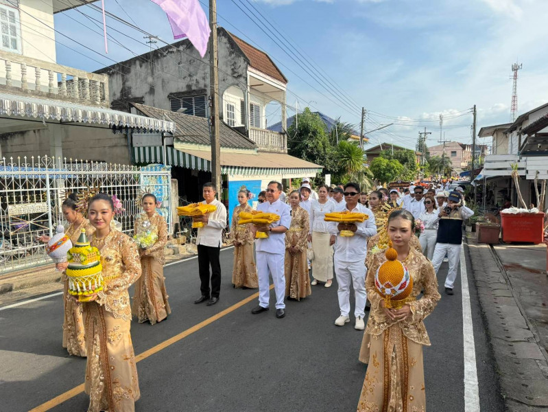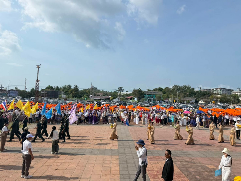 นายวิทศักดิ์ จำเริญนุสิต รองผู้ว่าราชการจังหวัดฯ เป็นประธาน ในพิธีปล่อยขบวนแห่ผ้าขึ้นพระธาตุเจดีย์วัดเขาสุวรรณประดิษฐ์ จังหวัดสุราษฎร์ธานี