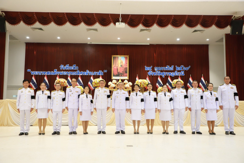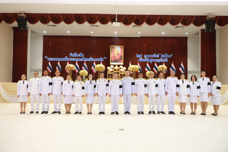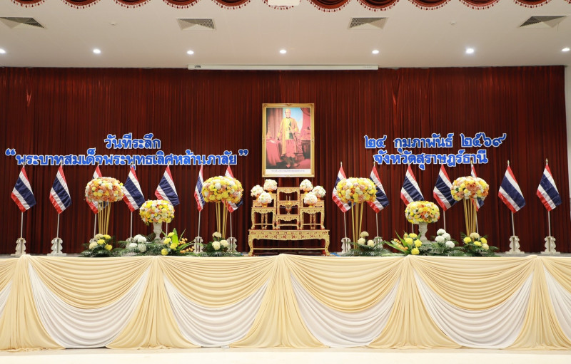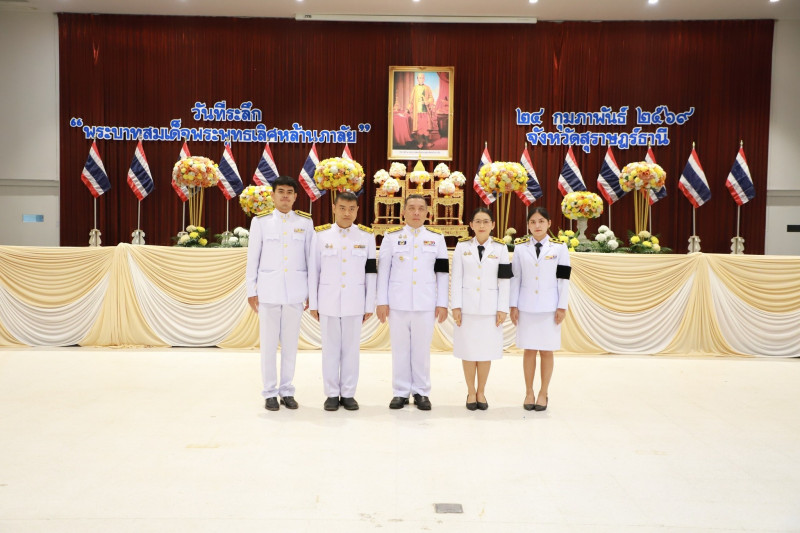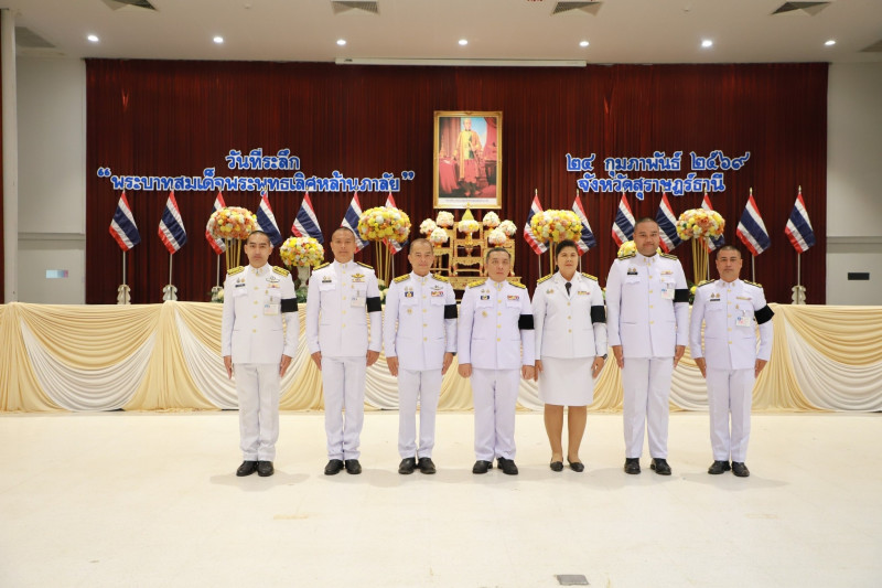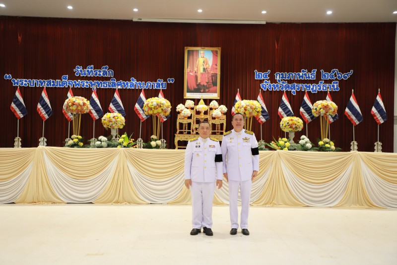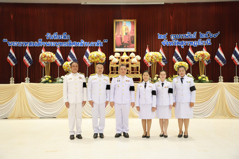 นายจุมพฏ วรรณฉัตรสิริ ผู้ว่าราชการจังหวัดสุราษฎร์ธานี เป็นประธานในพิธีวางพานพุ่มดอกไม้สดถวายราชสักการะ เนื่องในวันที่ระลึกพระบาทสมเด็จพระพุทธเลิศหล้านภาลัย ประจำปี 2569 โดยมีนายกล้าณรงค์ ยุติธรรม รองผู้ว่าราชการจังหวัดสุราษฎร์ธานี นายจักรกฤษณ์ ฝั่งชลจิตร์ รองผู้ว่าราชการจังหวัดสุราษฎร์ธานี หัวหน้าส่วนราชการ เหล่ากาชาด ศาล ทหาร ตำรวจ เจ้าหน้าที่ และพสกนิกรทุกหมู่เหล่า เข้าร่วมพิธี