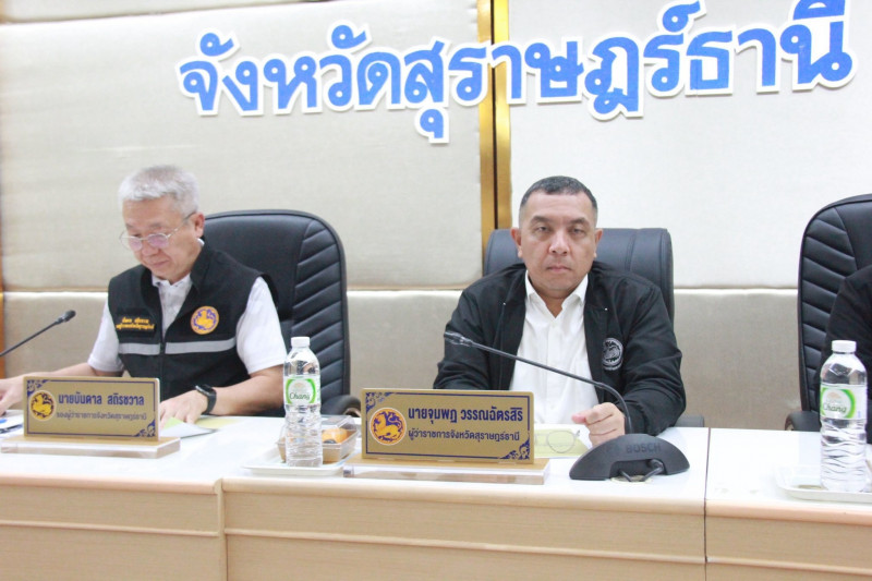 นายจุมพฏ วรรณฉัตรสิริ ผู้ว่าราชการจังหวัดสุราษฎร์ธานี พร้อมด้วยรองผู้ว่าราชการจังหวัด หัวหน้าส่วนราชการ นายอำเภอ และผู้เกี่ยวข้อง ร่วมรับฟังรายละเอียดโครงการ “ด้วยจงรักและภักดี” สร้างประโยชน์ให้ชุมชน ประชาชนมีความสุข และร่วมหารือแนวทางการดำเนินงานที่จะช่วยให้เกิดความร่วมมือกับประชาชนในชุมชน ณ ห้องประชุมเมืองคนดี ชั้น 5 ศาลากลางจังหวัดสุราษฎร์ธานี โดยมีคณะผู้ดำเนินโครงการฯ บริษัท ชุมชนเข้มแข็ง พอเพียง (ประเทศไทย) จำกัด เข้าร่วมหารือ เพื่อให้การดำเนินโครงการดังกล่าว เป็นไปอย่างมีประสิทธิภาพบรรลุวัตถุประสงค์ที่วางไว้