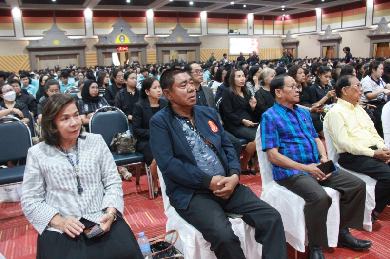 นายจุมพฏ วรรณฉัตรสิริ ผู้ว่าราชการจังหวัดสุราษฎร์ธานี เป็นประธานเปิดโครงการจิตอาสาพระราชทาน มหาวิทยาลัยแห่งความจงรักภักดีเหนือเกล้า พร้อมกล่าวต้อนรับพลเอก บุญสิน พาดกลาง นายทหารราชองครักษ์พิเศษ และที่ปรึกษาผู้บัญชาการทหารบก ที่ให้เกียรติเดินทางมาร่วมกิจกรรมและบรรยายพิเศษ เพื่อถ่ายทอดประสบการณ์และองค์ความรู้ในการสร้างจิตสำนึกรักชาติ ศาสน์ กษัตริย์ แก่นักเรียน นักศึกษา และผู้เข้าร่วมกิจกรรม ณ หอประชุมวชิราลงกรณ มหาวิทยาลัยราชภัฏสุราษฎร์ธานี