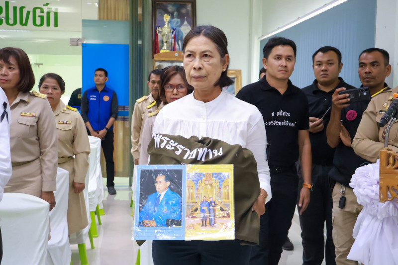 ก่อนการมอบสิ่งของพระราชทาน ได้มีพิธีถวายความเคารพหน้าพระบรมฉายาลักษณ์พระบาทสมเด็จพระเจ้าอยู่หัว เปิดกรวยดอกไม้ ธูป เทียนแพ และกล่าวรายงานสถานการณ์ จากนั้นประธานในพิธีได้มอบสิ่งของพระราชทานแก่ผู้ประสบภัย พร้อมกล่าวสำนึกในพระมหากรุณาธิคุณอย่างหาที่สุดมิได้