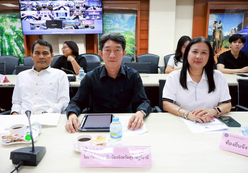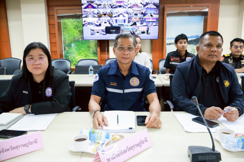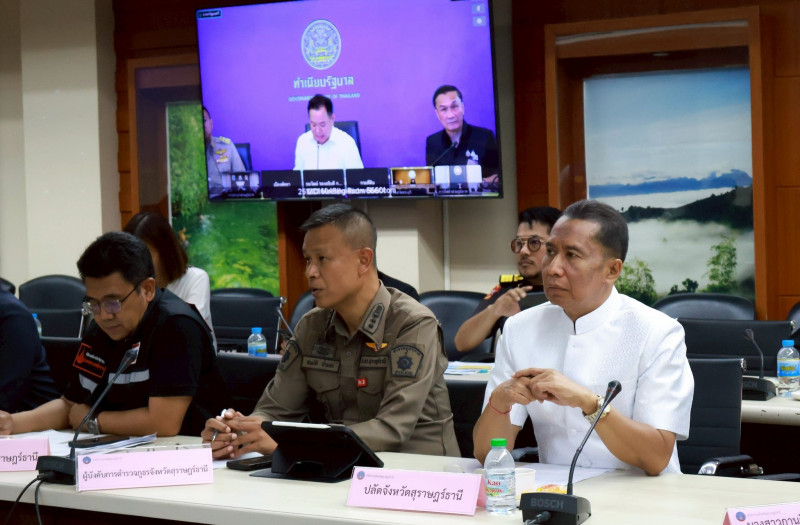 นายจุมพฏ วรรณฉัตรสิริ ผู้ว่าราชการจังหวัดสุราษฎร์ธานี พร้อมด้วย นายกล้าณรงค์ ยุติธรรม และ นายจักรกฤษณ์ ฝั่งชลจิตร์ รองผู้ว่าราชการจังหวัดสุราษฎร์ธานี ตลอดจนหัวหน้าส่วนราชการและหน่วยงานที่เกี่ยวข้อง เข้าร่วมการประชุมขับเคลื่อนภารกิจสำคัญของ กระทรวงมหาดไทย ผ่านระบบวีดิทัศน์ทางไกล (VCS) โดยมี นายอนุทิน ชาญวีรกูล นายกรัฐมนตรีและรัฐมนตรีว่าการกระทรวงมหาดไทยเป็นประธานการประชุม ณ ห้องประชุมราชสีห์ ชั้น 2 อาคารว่าการกระทรวงมหาดไทย