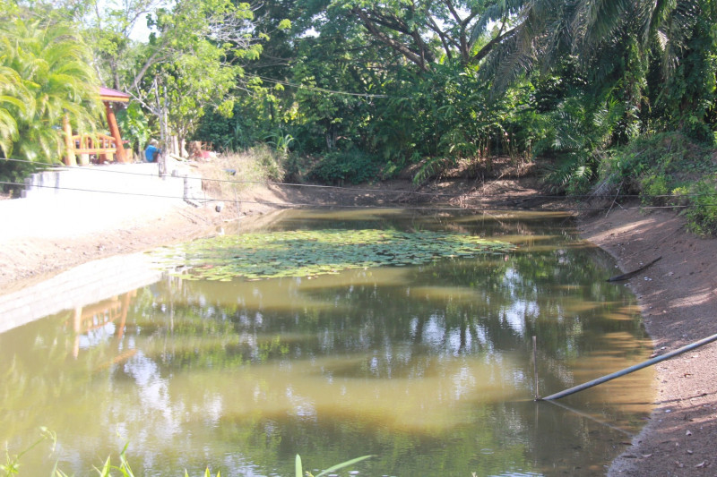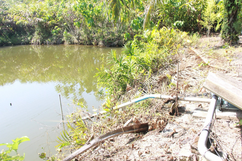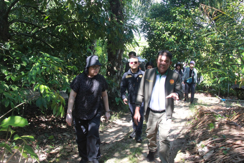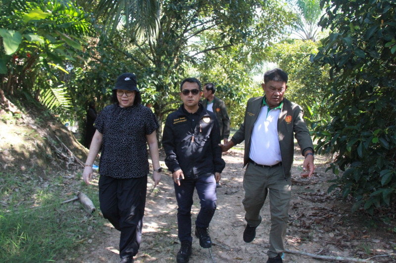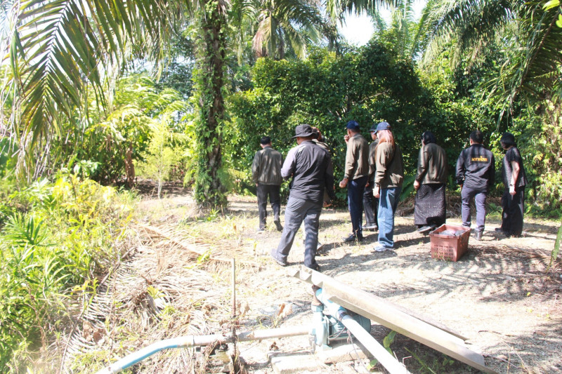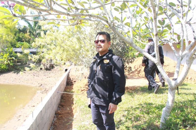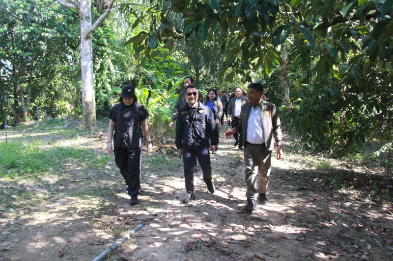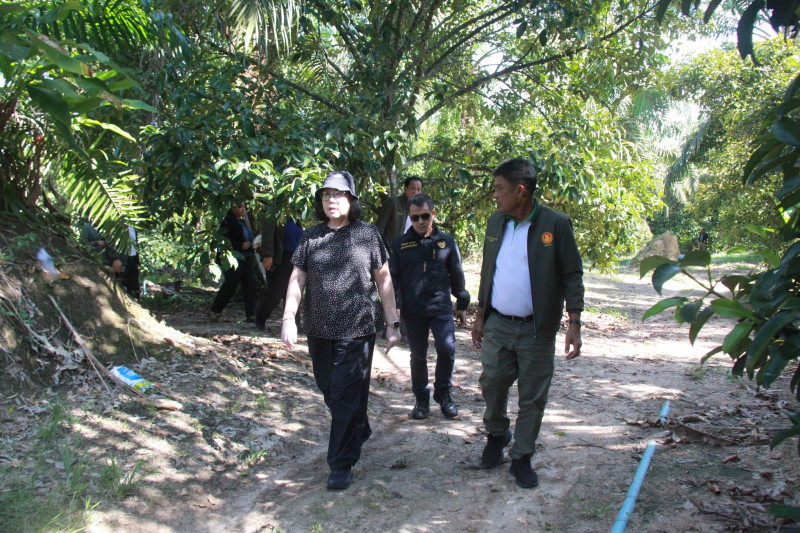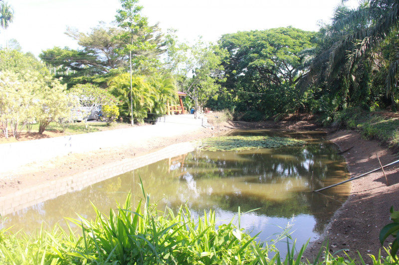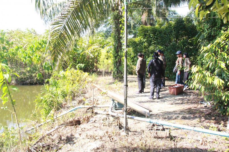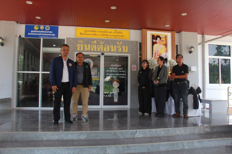 จากนั้นทางคณะฯ ได้เดินทางไปยังชุมชนบ้านทับคริสต์ หมู่ที่ 3 ตำบลคลองชะอุ่น อำเภอพนม เพื่อเรียนรู้รูปแบบการบริหารจัดการน้ำด้วยระบบ “สระพวง” ซึ่งเป็นการเชื่อมโยงแหล่งกักเก็บน้ำในพื้นที่ให้สามารถกระจายน้ำได้อย่างมีประสิทธิภาพ ช่วยเพิ่มความมั่นคงด้านน้ำให้กับเกษตรกรในระดับชุมชน ขณะที่สภาพทั่วไปของตำบลคลองชะอุ่น ประชาชนส่วนใหญ่ประกอบอาชีพทางเกษตร สวนยางพารา สวนปาล์มน้ำมัน สวนผลไม้ และเกษตรผสมผสาน มีแหล่งน้ำกักเก็บที่สำคัญ ได้แก่ อ่างเก็บน้ำคลองบางทรายนวล ตามพระราชดำริฯ พระบาทสมเด็จพระเจ้าอยู่หัวฯ รัชกาลที่ 9 ตั้งอยู่ที่บ้านทับคริสต์ หมู่ที่ 3 มีความจุเก็บกักน้ำ 2,200,000 ลูกบาศก์เมตร และอ่างเก็บน้ำบ้านบางหิน ตั้งอยู่ที่ บ้านบางหิน หมู่ที่ 5 ประโยชน์ในการส่งน้ำเสริมให้กับพื้นที่เพาะปลูกได้ประมาณ 1,000 ไร่ ทำให้ประชาชนมีน้ำใช้อุปโภค-บริโภคในเขตชลประทานตลอดทั้งปี