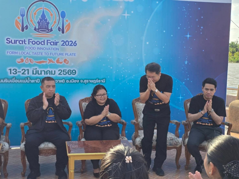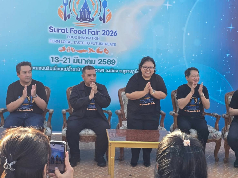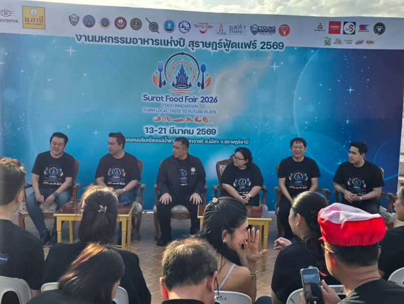 วันที่ 13 มีนาคม 2569 เวลา 17:00 น. จังหวัดสุราษฎร์ธานีจัดการแถลงข่าวเตรียมความพร้อมการจัดงาน “สุราษฎร์ฟู้ดแฟร์ 2026”