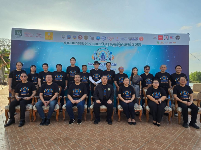 นายจุมพฏ วรรณฉัตรสิริ ผู้ว่าราชการจังหวัดสุราษฎร์ธานี เป็นประธานการแถลงข่าว พร้อมด้วยหน่วยงานภาครัฐ ภาคเอกชน และเครือข่ายด้านอุตสาหกรรมอาหารเข้าร่วม เพื่อยกระดับเทศกาลอาหารของจังหวัดสู่เวทีเศรษฐกิจอาหารยุคใหม่ ภายใต้แนวคิด “Food Innovation: From Local Taste to Future Plate” ซึ่งกำหนดจัดขึ้นระหว่างวันที่ 13–21 มีนาคม 2569 เวลา 17.00–22.00 น. ณ บริเวณริมเขื่อนแม่น้ำตาปี อำเภอเมือง จังหวัดสุราษฎร์ธานี