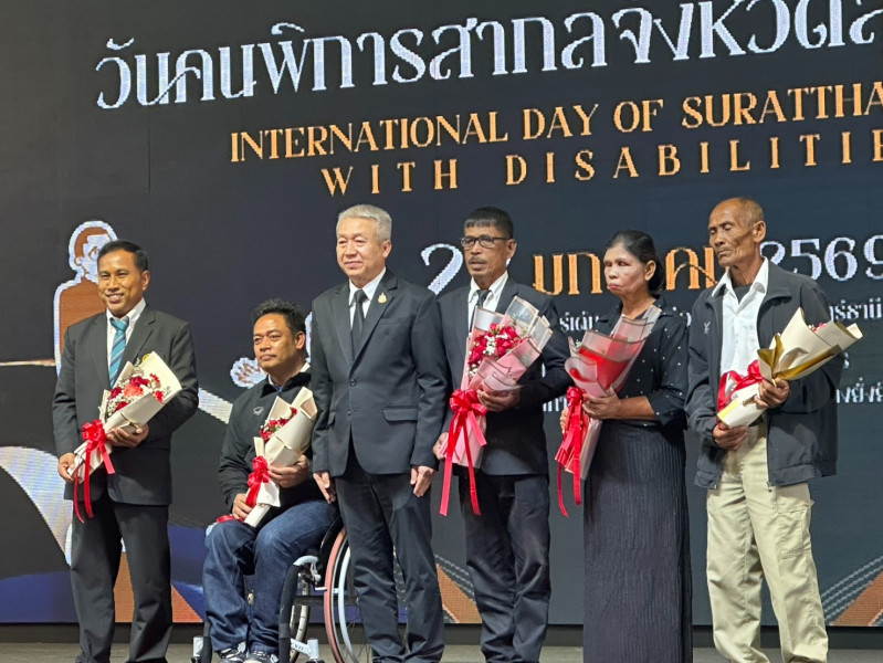นายบันดาล สถิรชวาล รองผู้ว่าราชการจังหวัดสุราษฎร์ธานีเป็นประธานในพิธีเปิดงานวันคนพิการสากลจังหวัดสุราษฎร์ธานี ประจำปี 2568 โดย สำนักงานพัฒนาสังคมและความมั่นคงของมนุษย์จังหวัดสุราษฎร์ธานี บูรณาการร่วมกับภาคีเครือข่ายจัดขึ้น ณ โรงแรมนิภาการ์เด้น อำเภอเมืองฯ จังหวัดสุราษฎร์ธานี เพื่อส่งเสริมความเข้าใจของสังคม เกี่ยวกับคนพิการและให้โอกาสคนพิการได้มีส่วนร่วมในทุกกิจกรรมของสังคมอย่างสร้างสรรค์ เป็นธรรม และเสมอภาคกับคนทั่วไป โดยในปี 2568 องค์กรสหประชาชาติได้กำหนดประเด็นหลักคือ "การส่งเสริมสังคมที่ครอบคลุมและเอื้อต่อคนพิการ เพื่อขับเคลื่อนความก้าวหน้าและการพัฒนาทางสังคมอย่างยั่งยืน" เพื่อให้ทุกภาคส่วนของสังคมมารวมพลังกันขับเคลื่อนการดำเป็นงานด้านคนพิการ ให้เป็นสังคมที่น่าอยู่และมีความเป็นธรรมยิ่งขึ้น