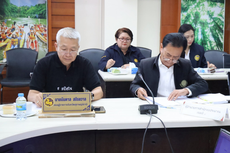 นายจุมพฏ วรรณฉัตรสิริ ผู้ว่าราชการจังหวัดสุราษฎร์ธานี เป็นประธานประชุมหารือการดำเนินโครงการชุดลอกสระเก็บน้ำทุ่งหัวสน บ้านพุฒ หมู่ที่ 3 ตำบลช้างขวา อำเภอกาญจนดิษฐ์ จังหวัดสุราษฎร์ธานี โดยมีนายบันดาล สถิรชวาล รองผู้ว่าราชการจังหวัดสุราษฎร์ธานี พร้อมด้วยผู้แทนหน่วยงานราชการ และผู้เกี่ยวข้อง เข้าร่วม ณ ห้องตาปี ชั้น 4 ศาลากลางจังหวัดสุราษฎร์ธานี เพื่อหารือการดำเนินการในส่วนที่เกี่ยวข้องกับโครงการดังกล่าว