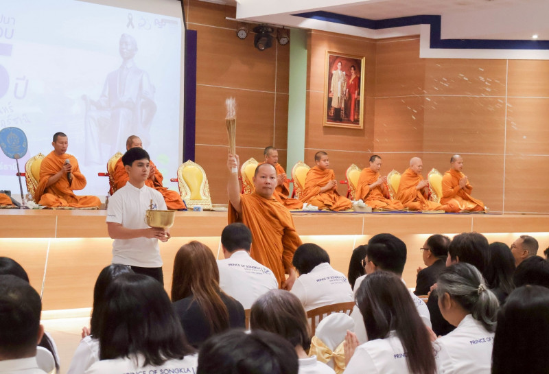 พิธีดังกล่าวประกอบด้วยการยืนสงบนิ่งถวายความอาลัยสมเด็จพระนางเจ้าสิริกิต์ พระบรมราชินีนาถ พระบรมราชชนนีพันปีหลวง จากนั้นรองศาสตราจารย์สุชาดา ทิพย์มนตรี รองอธิการบดีวิทยาเขตสุราษฎร์ธานี กล่าวต้อนรับและรำลึกถึงพัฒนาการของวิทยาเขตสุราษฎร์ธานีตลอด 35 ปี ซึ่งมีบทบาทสำคัญในการผลิตบัณฑิต งานวิจัย บริการวิชาการ และการสร้างประโยชน์แก่สังคม ตามอุดมการณ์ “ประโยชน์ของเพื่อนมนุษย์เป็นกิจที่หนึ่ง” ของมหาวิทยาลัยสงขลานครินทร์ พร้อมน้อมรำลึกพระมหากรุณาธิคุณของ สมเด็จพระเจ้าพี่นางเธอ เจ้าฟ้ากัลยาณิวัฒนาฯ ที่เสด็จพระราชดำเนินวางศิลาฤกษ์ ณ เขาท่าเพชร เมื่อปี พ.ศ. 2536 ซึ่งเป็นรากฐานสำคัญของการเจริญเติบโตของวิทยาเขตมาจนถึงปัจจุบัน พร้อมกันนี้ได้มีพิธีสงฆ์ เพื่อความเป็นสิริมงคล ทั้งยังมีพิธีสงฆ์เพื่อความเป็นสิริมงคลแก่ผู้ร่วมงาน