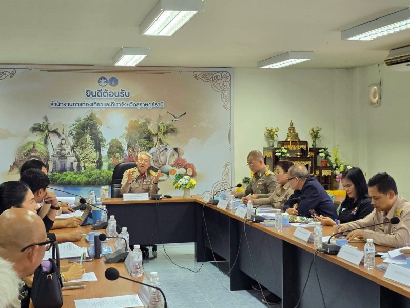 ที่ประชุมได้รายงานความคืบหน้าการดำเนินงานด้านการส่งเสริมการท่องเที่ยว อาทิ การจัดกิจกรรม “น้องตะพัดทองพาล่องสุราษฎร์ฯ” สำหรับกีฬาเยาวชนแห่งชาติ และกิจกรรม “ลุงตะพัดเงิน เชิญเที่ยวเมืองคนดี” สำหรับกีฬาอาวุโสแห่งชาติ รวมถึงแผนการจัดกำลังคน พาหนะ อุปกรณ์ แผนงบประมาณ การจัดหาร้านค้าและผู้ประกอบการเข้าร่วมจัดทำโปรโมชั่นสนับสนุนนักกีฬา ผู้ฝึกสอน และคณะกรรมการที่เข้าร่วมการแข่งขัน โดยตั้งเป้าหมายร้านค้าร่วมโครงการไม่น้อยกว่า 120 ร้าน นอกจากนี้ ยังมีแผนพัฒนาแอปพลิเคชัน “Go สุราษฎร์ฯ” เพื่ออำนวยความสะดวกด้านข้อมูล การเดินทาง และการท่องเที่ยวให้แก่นักกีฬาและเจ้าหน้าที่ พร้อมเน้นย้ำมาตรการด้านความปลอดภัยในชีวิตและทรัพย์สินของผู้เข้าร่วมการแข่งขันและผู้ติดตาม เพื่อสร้างความเชื่อมั่นและภาพลักษณ์ที่ดีให้กับจังหวัดสุราษฎร์ธานีในฐานะเจ้าภาพการแข่งขันกีฬาระดับชาติ