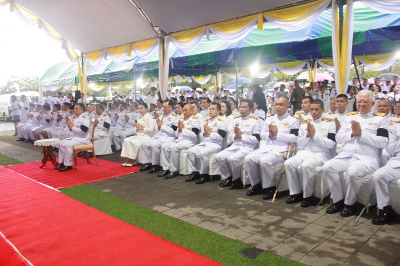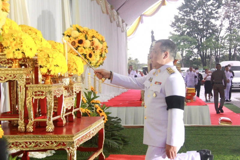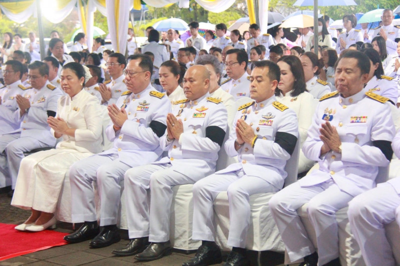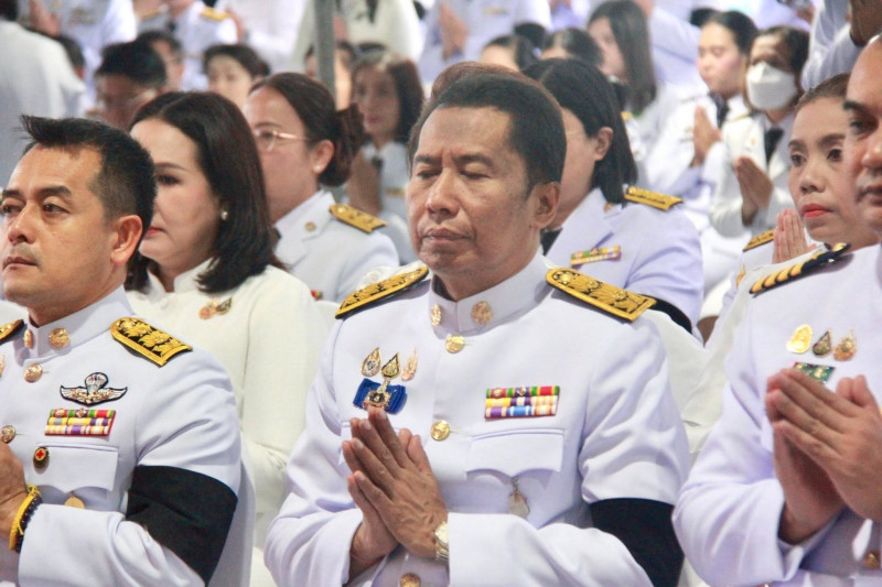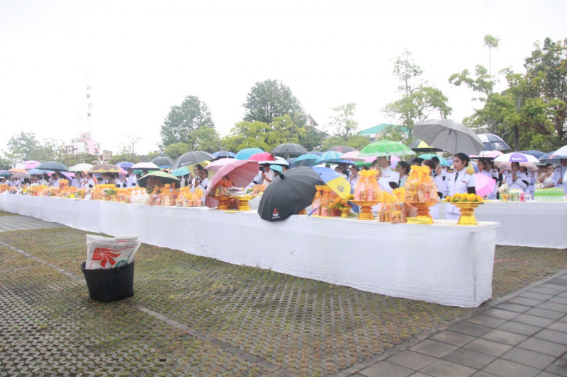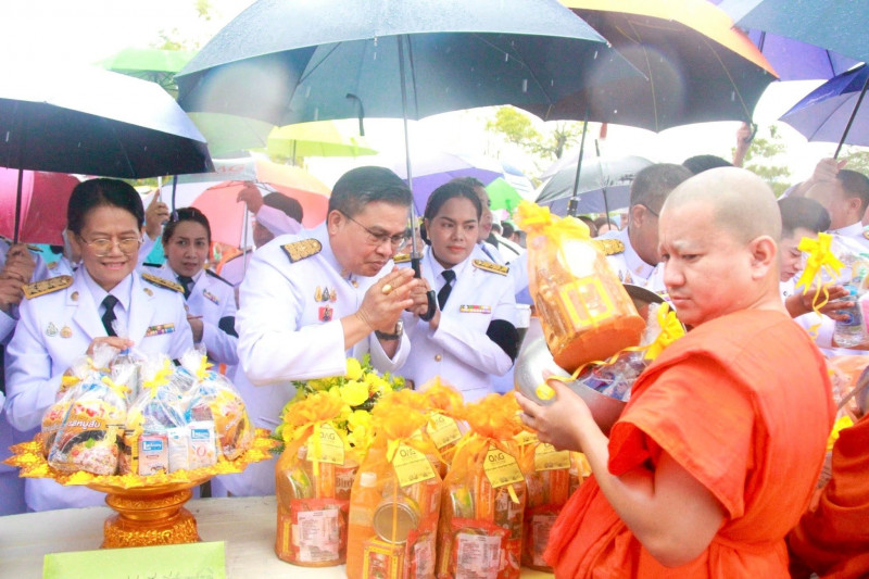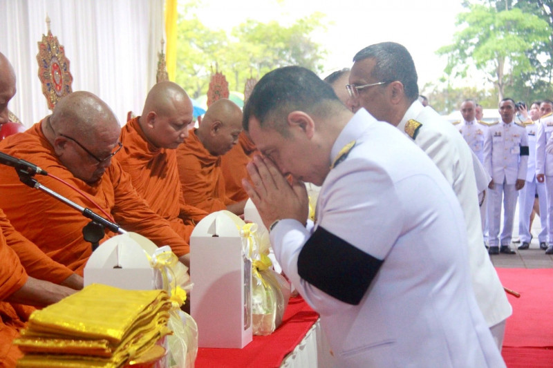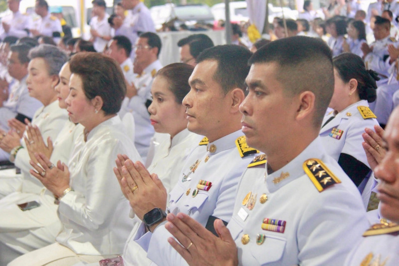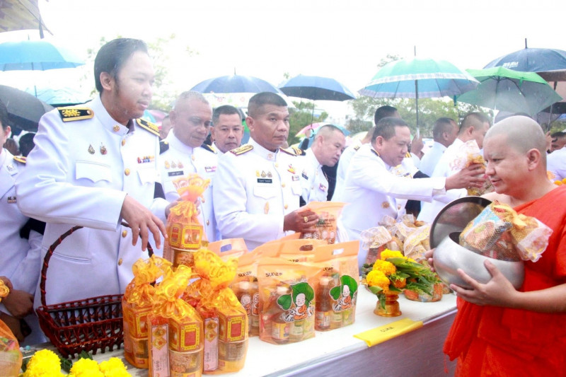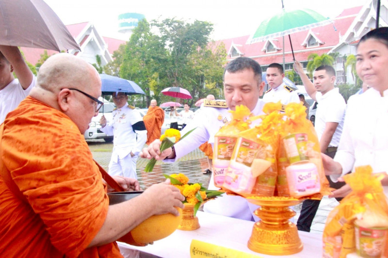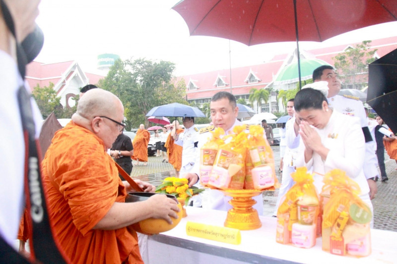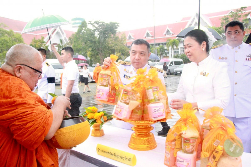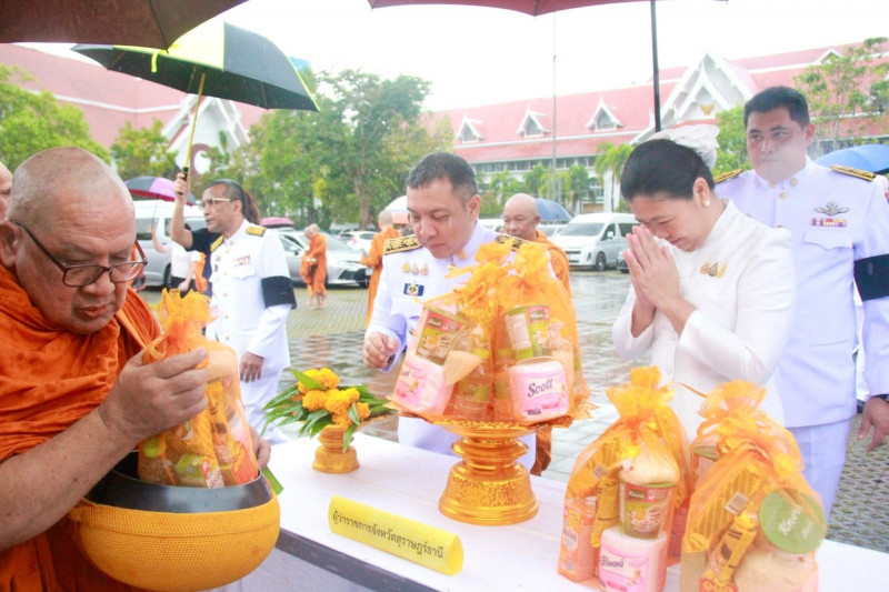 นายจุมพฏ วรรณฉัตรสิริ ผู้ว่าราชการจังหวัดสุราษฎร์ธานี เป็นประธานในพิธีเจริญพระพุทธมนต์และทำบุญตักบาตรถวายพระราชกุศล เนื่องในวันคล้ายวันพระบรมราชสมภพพระบาทสมเด็จพระบรมชนกาธิเบศ มหาภูมิพลอดุลยเดชมหาราช บรมนาถบพิตร วันชาติ และวันพ่อแห่งชาติ 5 ธันวาคม 2568 ที่จัดขึ้น ณ บริเวณสนามหน้าศาลากลางจังหวัดสุราษฎร์ธานี โดยมีพระสงฆ์ และสามเณร จำนวน 89 รูป เดินบิณฑบาต พร้อมกันนี้มีนางวีณา วรรณฉัตรสิริ ประธานแม่บ้านมหาดไทยจังหวัดสุราษฎร์ธานี รองผู้ว่าราชการจังหวัดฯ หัวหน้าส่วนราชการ ทหาร ตำรวจ ข้าราชการ พนักงานของรัฐ องค์กรเอกชน และพุทธศนิกชนทุกหมู่เหล่าเข้าร่วมอย่างพร้อมเพรียงกัน