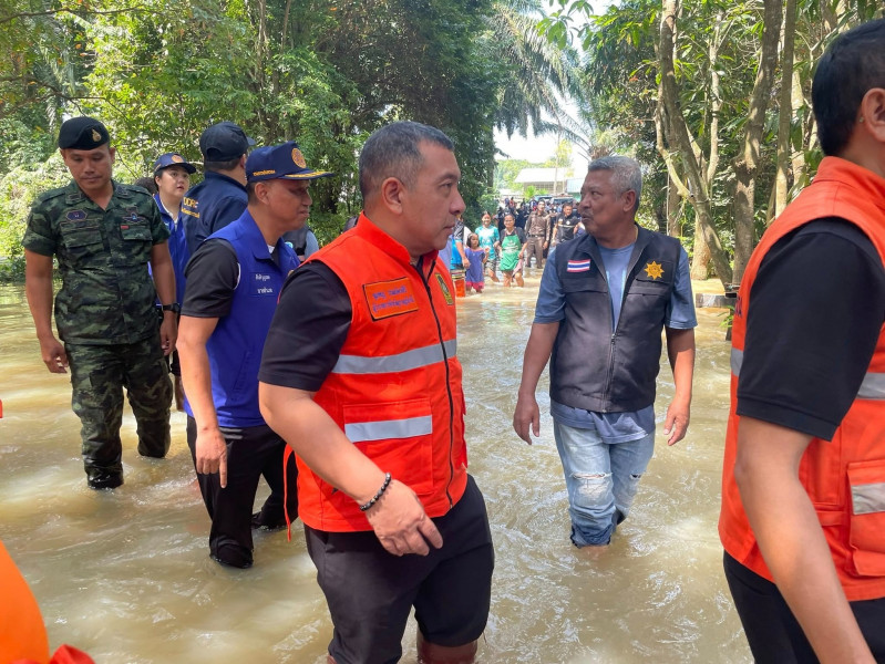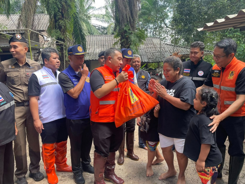 ภายหลังการประชุม ผู้ว่าราชการจังหวัดได้ลงพื้นที่หมู่ที่ 1 ตำบลเคียนซา อำเภอเคียนซา เพื่อมอบถุงยังชีพและให้กำลังใจประชาชนที่ได้รับผลกระทบจากสถานการณ์น้ำล้นตลิ่ง พื้นที่ดังกล่าวมีบ้านเรือนกว่า 100 หลังคาเรือนที่ได้รับผลกระทบ บางจุดระดับน้ำยังคงสูง แต่ประชาชนยังมีขวัญกำลังใจดี และขอบคุณหน่วยงานภาครัฐที่ให้การสนับสนุนอย่างต่อเนื่อง ทั้งด้านการแจกถุงยังชีพ การช่วยระบายน้ำ การเคลื่อนย้ายสิ่งของ และการดูแลในโซนเสี่ยงริมแม่น้ำตาปี