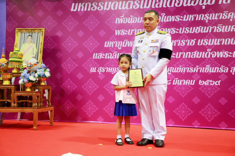 ในการนี้ ผู้ว่าราชการจังหวัดสุราษฎร์ธานีได้เป็นประธานในพิธีบนเวที รับฟังรายงานการจัดงาน พร้อมชมการแสดงจากนักเรียน ก่อนมอบรางวัลให้แก่นักเรียนที่ได้รับรางวัล “เพชรแห่งแผ่นดิน” ครั้งที่ 5 จำนวน 14 รางวัล ซึ่งเป็นเยาวชนที่มีความประพฤติดี มีผลงานโดดเด่น และสร้างคุณประโยชน์ให้กับสังคม รวมทั้งมอบรางวัล “เพชรบุตรโกสินทร์” จำนวน 40 ราย เพื่อเชิดชูเกียรติและเป็นกำลังใจแก่เยาวชนที่ทำความดี