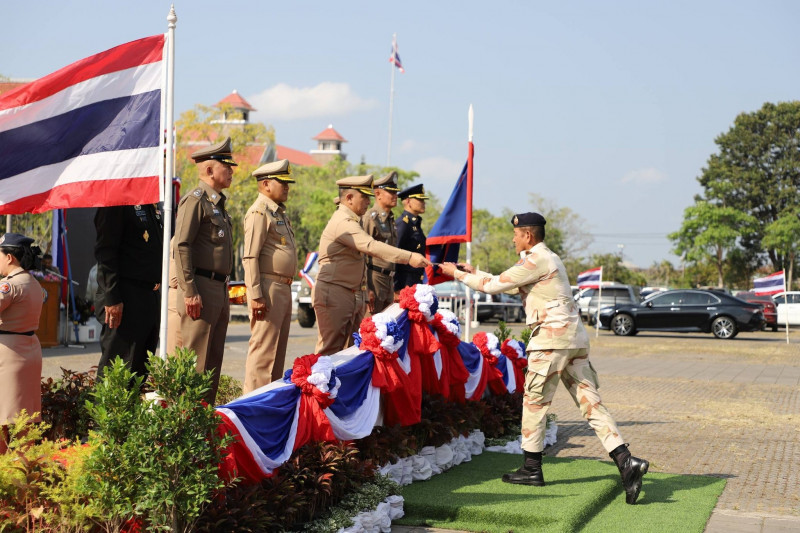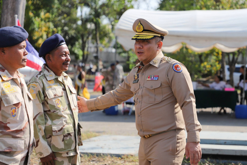 นายจุมพฏ วรรณฉัตรสิริ ผู้ว่าราชการจังหวัดสุราษฎร์ธานี ในฐานะผู้บังคับการกองอาสารักษาดินแดนจังหวัดสุราษฎร์ธานี พร้อมด้วย นายกล้าณรงค์ ยุติธรรม รองผู้ว่าราชการจังหวัดสุราษฎร์ธานี นายจักรกฤษณ์ ฝั่งชลจิตร์ รองผู้ว่าราชการจังหวัดสุราษฎร์ธานี ตัวแทนศาล ทหารตำรวจ หัวหน้าส่วนราชการ เหล่ากาชาด พนักงาน เจ้าหน้าที่ ครอบครัว อส. และผู้เกี่ยวข้อง ร่วมพิธีชุมนุมผู้บังคับบัญชา เจ้าหน้าที่ และสมาชิกกองอาสารักษาดินแดน เนื่องในวันคล้ายวันสถาปนากองอาสารักษาดินแดน ครบรอบ 72 ปี ประจำปี 2569 ที่จัดขึ้น ณ ลานหน้าศาลากลางจังหวัดสุราษฎร์ธานี อำเภอเมืองฯ จังหวัดสุราษฎร์ธานี
