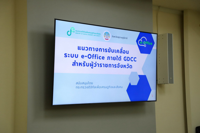 นายจุมพฏ วรรณฉัตรสิริ ผู้ว่าราชการจังหวัดสุราษฎร์ธานี เป็นประธานการประชุมเพื่อขับเคลื่อนการใช้งานระบบ e-Office ภายใต้บริการคลาวด์กลางภาครัฐ (Government Data Center and Cloud Service : GDCC) ตามนโยบายรัฐบาลด้านการพัฒนาราชการดิจิทัล
