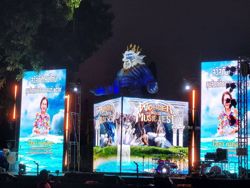 สำหรับงาน “Wonder Water Fighting Music Fest” จัดขึ้นระหว่างวันที่ 12 – 14 เมษายน 2569 ที่ บริเวณท่าปลาวาฬถึงหน้าจวนผู้ว่าราชการจังหวัดสุราษฎร์ธานี มีงานจัดในรูปแบบมิวสิคเฟสติวัลกลางเมือง พร้อมกิจกรรมการแสดงดนตรีจากศิลปินชื่อดัง วงดนตรีท้องถิ่น และดีเจ EDM การประกวดแต่งกาย “The Iconic Costume Contest” รวมถึงการจัดแสง สี เสียง น้ำพุดนตรี และอุโมงค์น้ำตลอดแนวเขื่อน